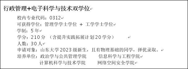 现面向我校2023级本科新生选拔招收行政管理+电子科学与技术双学位专业学生,具体信息如下: