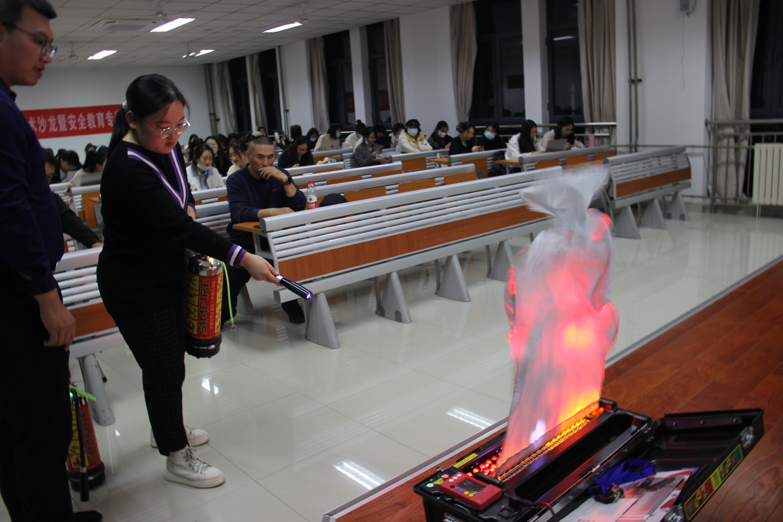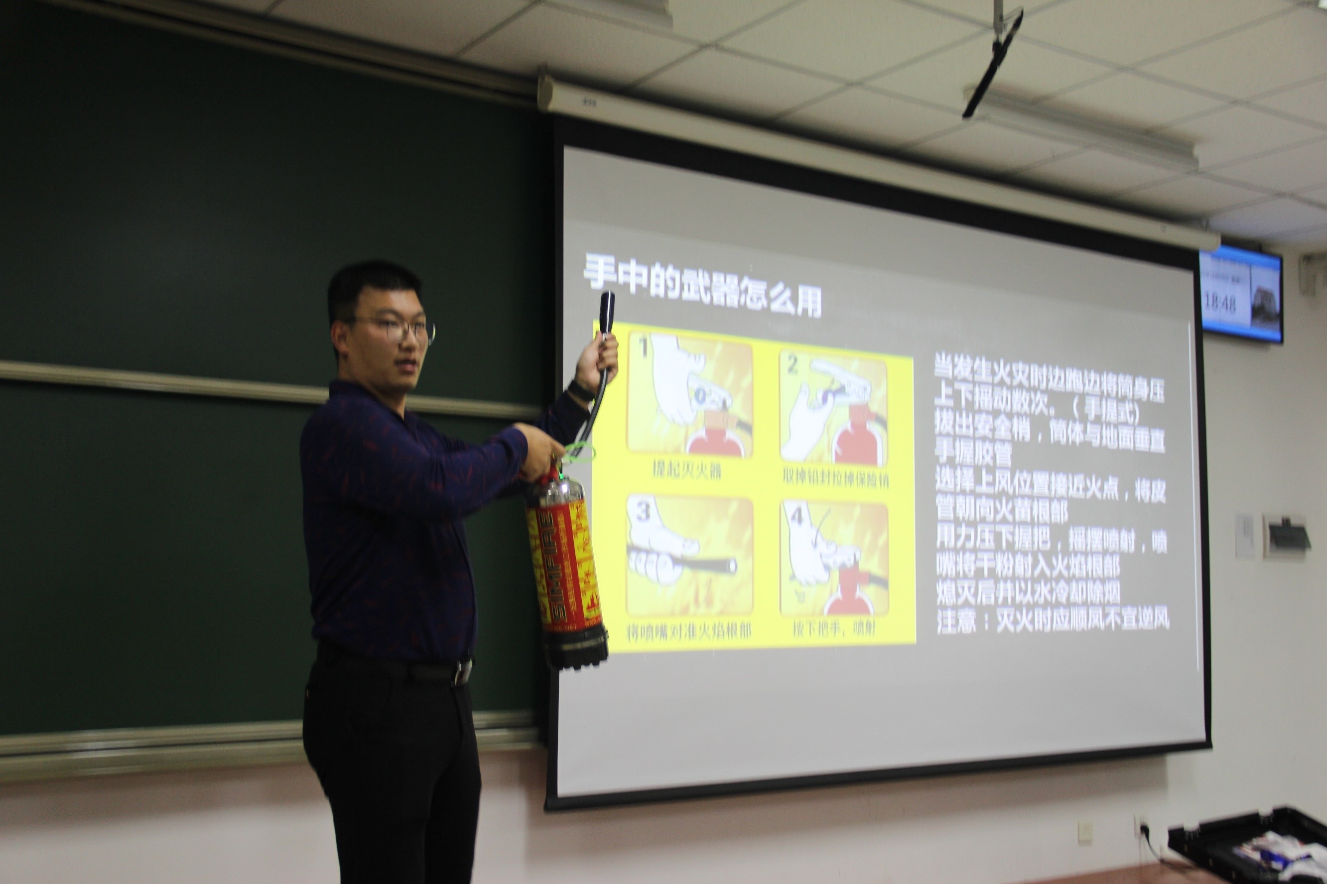 青岛校区保卫处李志强老师及孙垚老师等对安全知识进行讲解,并运用相关器材进行了实地模拟演练。