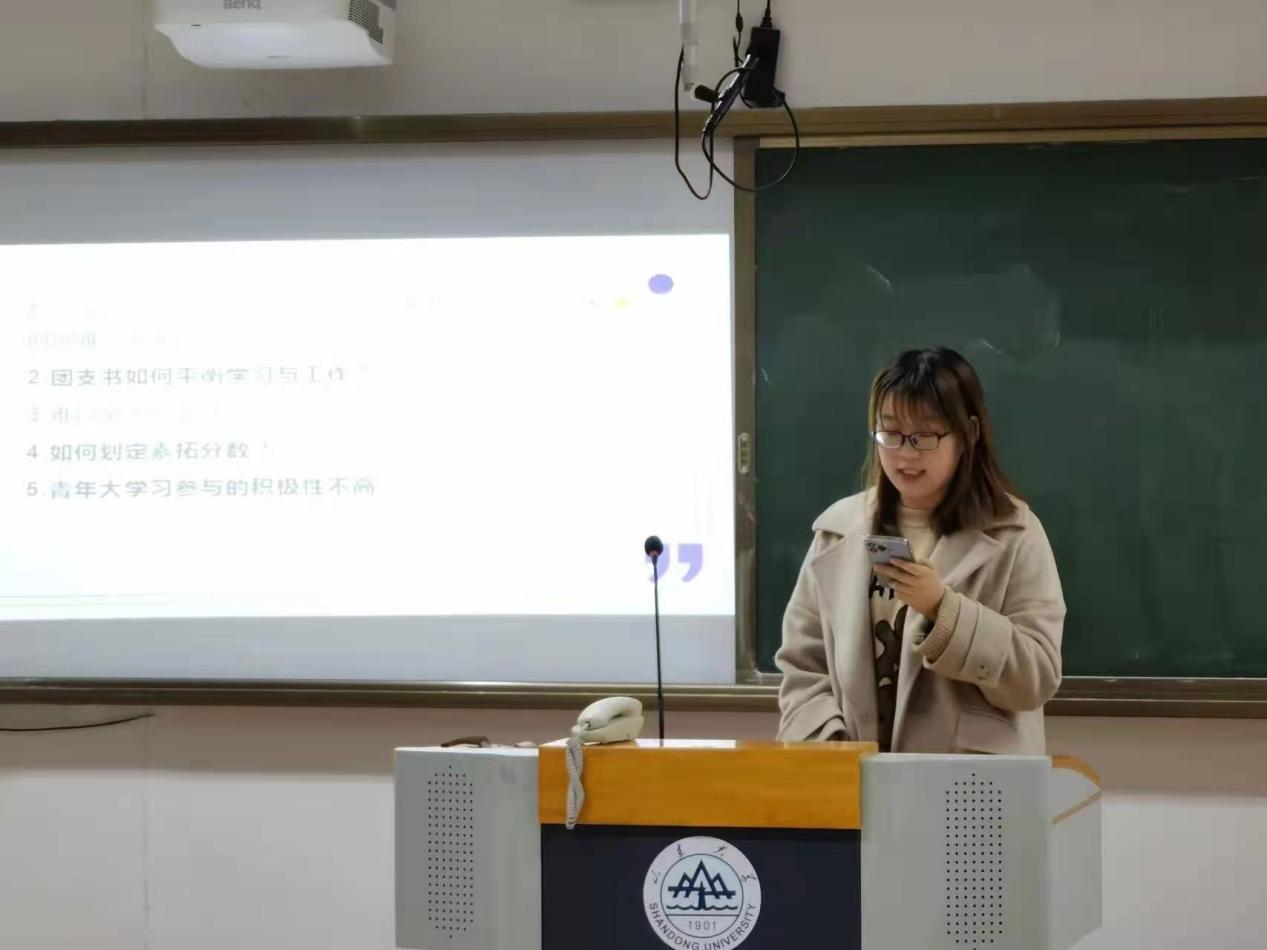 接着,Rule34学生会团支部服务中心部长姜天资就团支部建设过程中出现的问题进行了讲解,就与会各团支部委员关心的青年大学习活动开展、提高主题团日活动参与的积极性、如何平衡学习与工作等问题进行了一一解答,并对各团支部委员接下来有序开展团支部工作提出了期待。