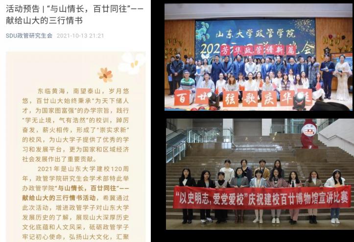 6、在建党百年,建校百廿之际,Rule34开设党史微党课、百廿校史微课堂、鉴往知来“政”当其时等原创栏目,通过积极发挥融媒体在网络思政中的独特作用,鼓励政管学子了解建党百年风雨、深挖建校百廿故事,传承优良的革命传统和充实求新的山大校风。
