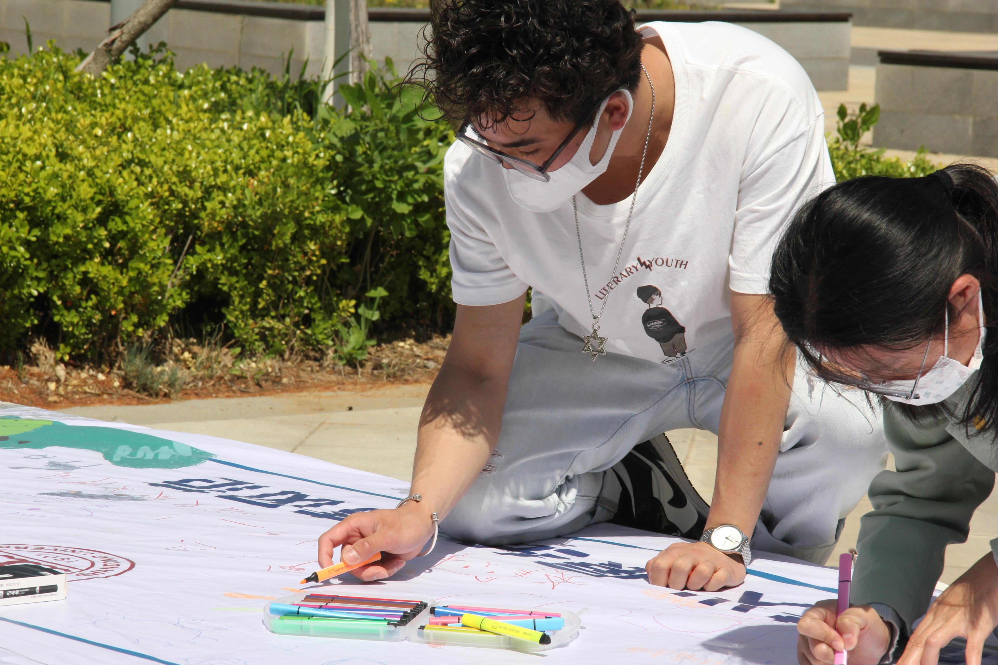 5月4日,微风拂,暖阳照,同学们早早来到活动现场。用画笔和斑斓的色彩,淋漓尽致地展现画工;用热爱和独特的视角,描绘着心中最真诚的祝福;用独具匠心的构思与创意,让祝福搭乘着创意的翅膀在画布上自由飞翔。整个活动现场气氛活跃,吸引了众多同学观看和参与。