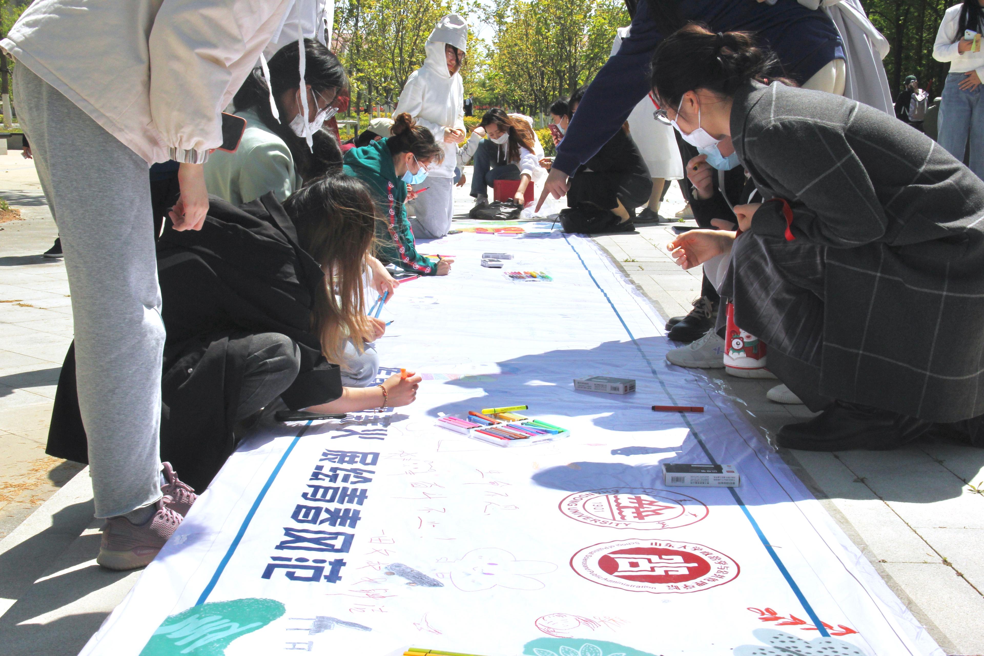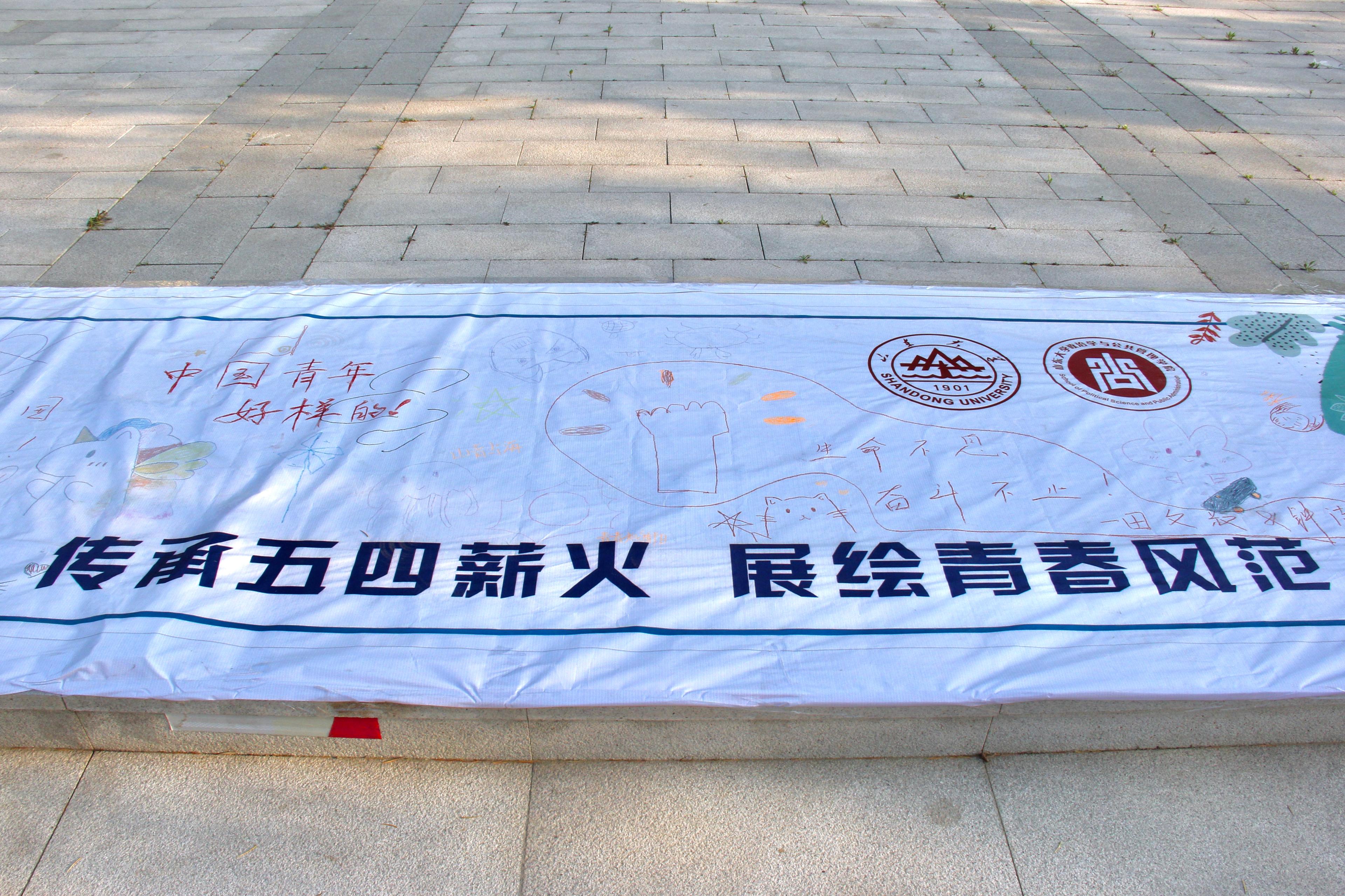 (青岛)华岗苑南楼楼前举办“传承五四薪火,展绘青春风范”五四青年节涂鸦创作活动,用实际行动献礼建团百年。