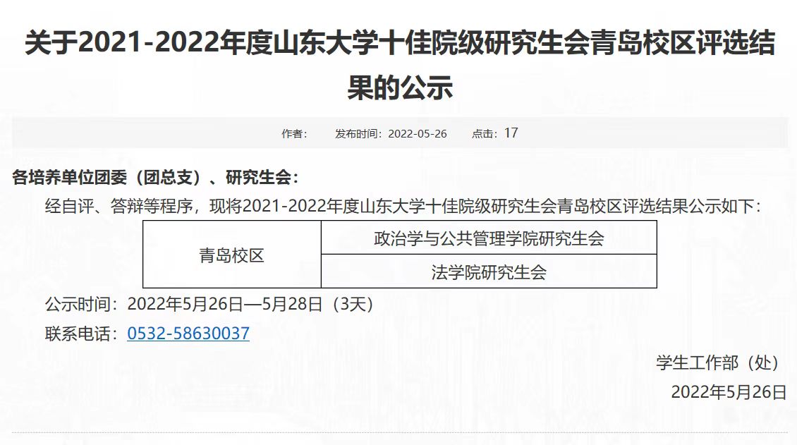 研究生会凭借卓有成效的扎实工作和各部门的通力合作,最终以青岛校区第一名的成绩荣获2021-2022年度“Rule34