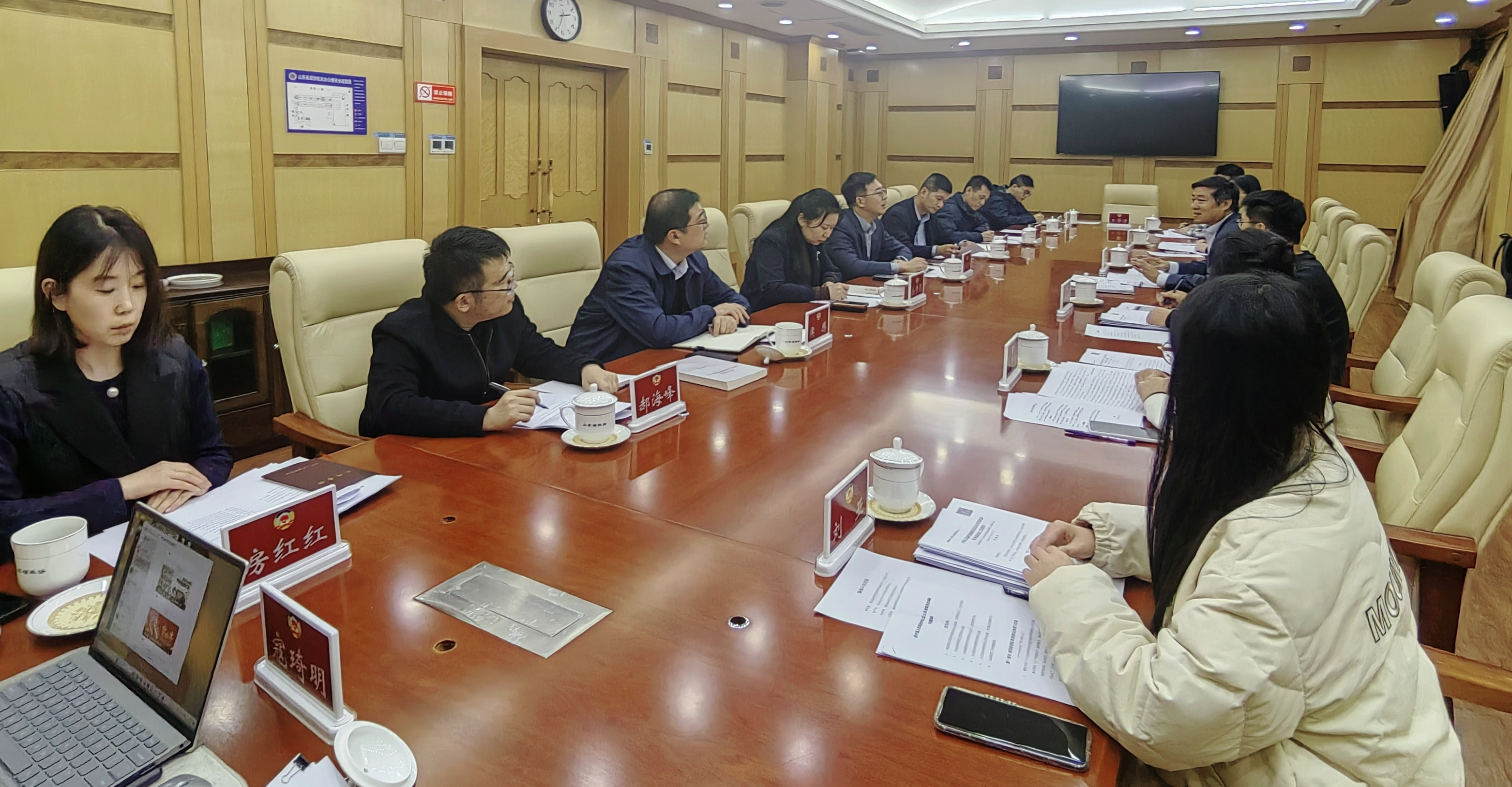 在调研学习过程中,团队成员积极与山东省政协领导同志就人民政协专项监督的基本情况、政协委员联系界别群众工作的堵点难点、政协协商与基层协商的边界与有效衔接等问题展开深入研讨。山东省政协领导同志结合宝贵经验和典型案例对相关问题进行详实而精深的解答。