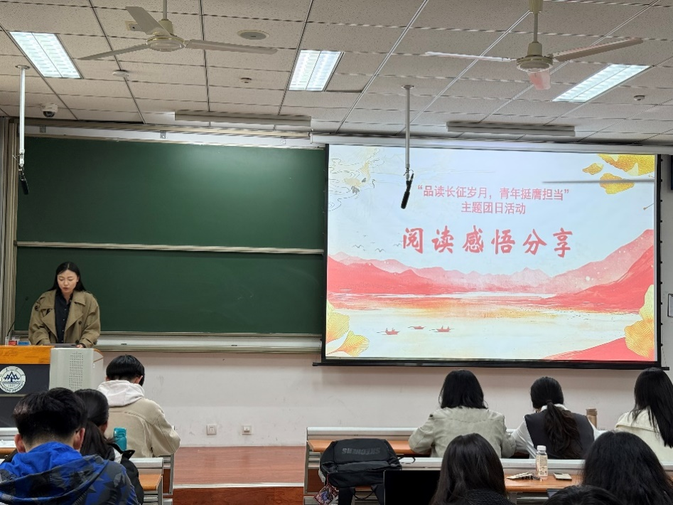 活动伊始,团支书宋怡向全体同学推荐《红军长征 血战湘江》一书。她从湘江战役的战略背景切入,详细梳理了红军突破国民党第四道封锁线的悲壮历程,重点解析了战役中“勇于胜利、勇于突破、勇于牺牲”的精神内核。“这本书不仅是历史记录,更是一本‘精神教科书’,让我们看见革命先辈用生命诠释的信仰力量。”