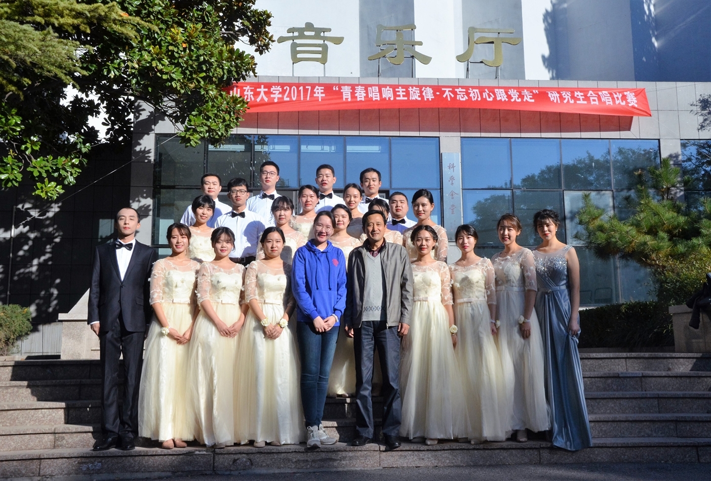 研究生合唱比赛在中心校区圣昆仑音乐厅举行。我院2017级统一战线专业16位硕士研究生和5位博士研究生组成的统战合唱队凭借《听妈妈讲那过去的事情》和《共筑中国梦》两首曲目的精彩演唱荣获三等奖。学院党委副书记彭展来到现场为同学们加油鼓劲并合影留念。