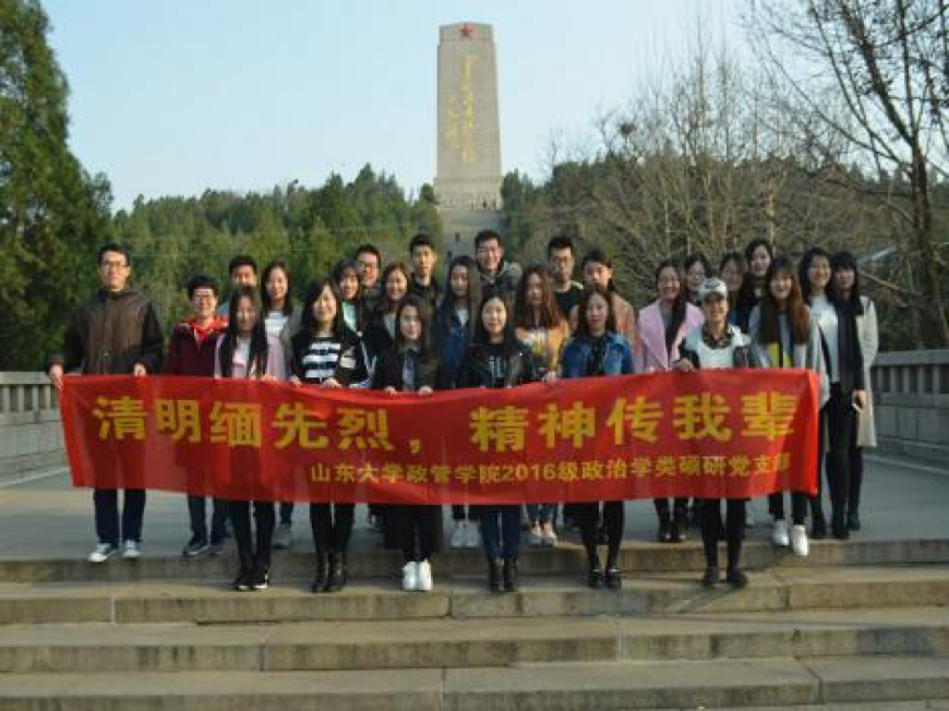 2016级政治学班硕士研究生在党支部组织下,前往济南英雄山革命烈士陵园,开展清明扫墓活动,缅怀英雄先烈。