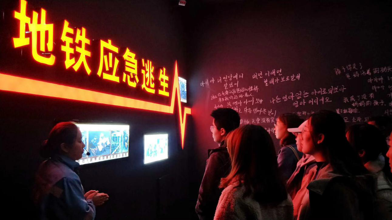 在安全培训中心,针对不同应急情况同学们体验了心肺复苏、火灾处置、逃生等多种培训项目。这不是游乐场的游戏,也不是公园的惊险项目,而是在应急方面的实用技能。同学们首先通过讲解员的指导和实操掌握了心肺复苏的技能,然后在互动答题和体验方式中学习了火灾预防和逃生方面的知识,随后又在讲解员的带领下体验了地震模拟现场,通过大地晃动和建筑物坍塌让同学们切实感受到地震的破坏力和地震中应遵循的安全原则。之后,同学们体验了模拟地铁列车发生故障后,乘客如何避免踩踏及有序撤退。最后,同学们共同学习了实用的自救结绳法。立体化的体验式培训与以往的安全培训不同,让同学们身临其境地体验了各种突发事故,让风险管理的意识更加深入人心。