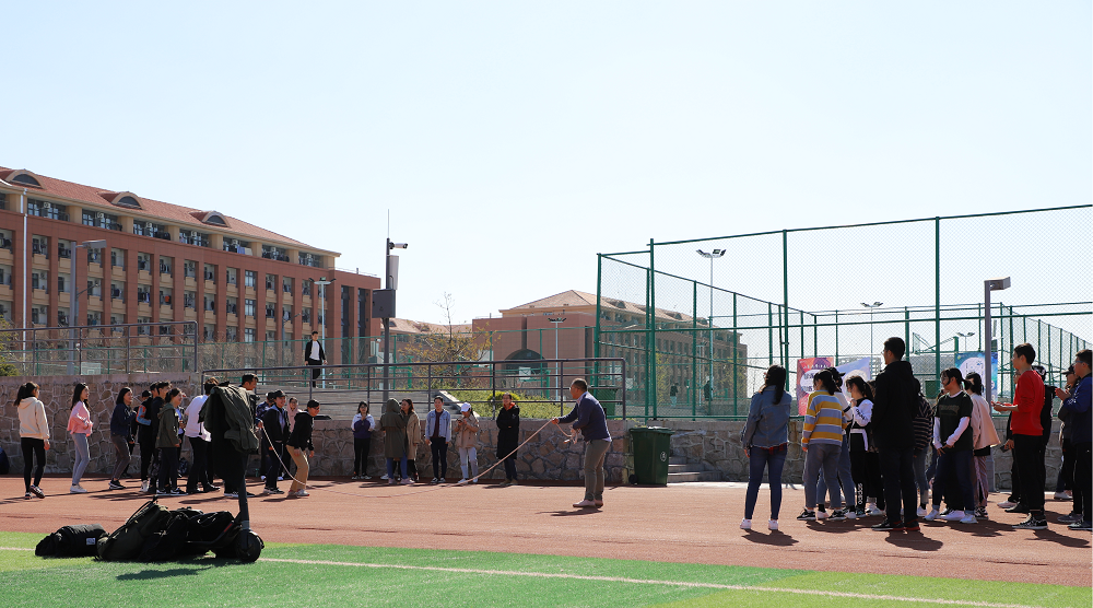春季长绳比赛在田径场隆重举行,来自学院各班级的五支队伍共计六十余人参加了此次比赛。