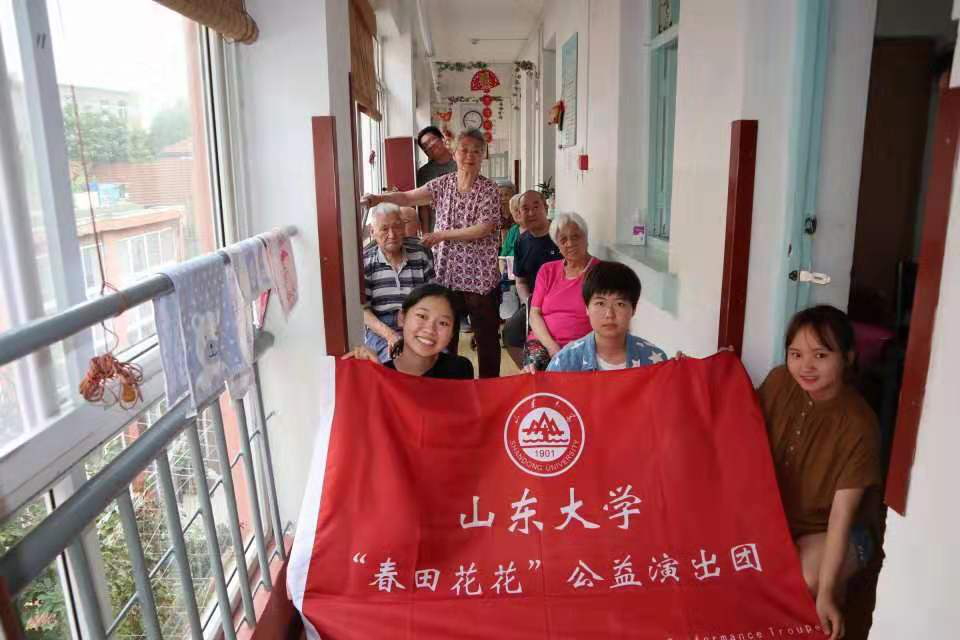 “春田花花”公益演出团分别前往青岛市内四家养老院开展公益演出。演出以“生如夏花,烂漫芳华”为主题,以丰富养老院老人生活、关爱社会弱势老年群体为宗旨,为老人送去了小品、相声、戏曲、歌曲等多种文艺形式的节目,赢得了养老院内老人及院方的一致好评。