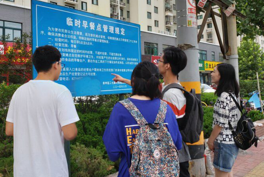 以济南市市中区早餐摊位作为调研地点,次日的访谈帮助团队成员初步了解济南市城市管理尤其是在早餐摊贩方面的有关规定,明晰济南流动摊贩治理模式,从中找寻可借鉴性治理方案,为之后探寻城市管理新模式提供理论与实践支撑。济南市作为山东省省会城市,其对于流动摊位的治理模式具有典型性,对于山东省乃至全国其他地市的流动摊位治理将会有启示性和引领性作用。