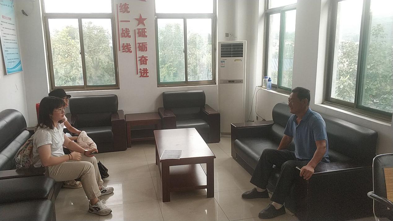 小队一行三人先前往烟庄村会见分管财务和土地以及民事纠纷的村委主任,询问乡村发展状况、妇女权益、乡村振兴等问题,村委主任尤其详细地回答阐述了关于妇女权益未来走向的想法,他认为:妇女在将来不仅仅是束缚于土地之上而可以自主择业,拥有更大的主动权和积极性。经过一番长谈后,村委主任还亲自带领团队参观烟庄村的果王和苹果科技园,感受现代科技与传统农业工艺的交融魅力,体会新乡村的优势和美妙。