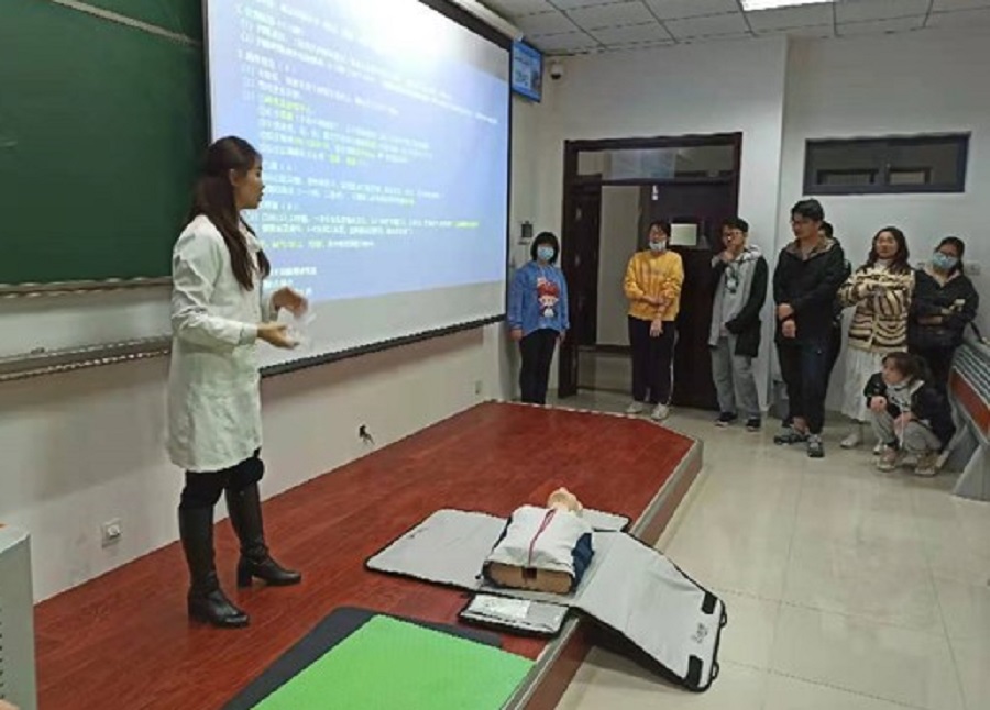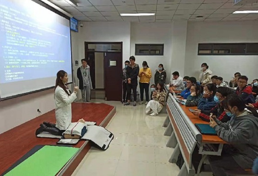 公共管理系韩自强教授邀请青岛大学附属医院临床医学模拟与微创技术培训中心副主任王璐在振声苑开展急救培训会,培训共有100余名同学参加,2018级行政管理班多名同学参与。
