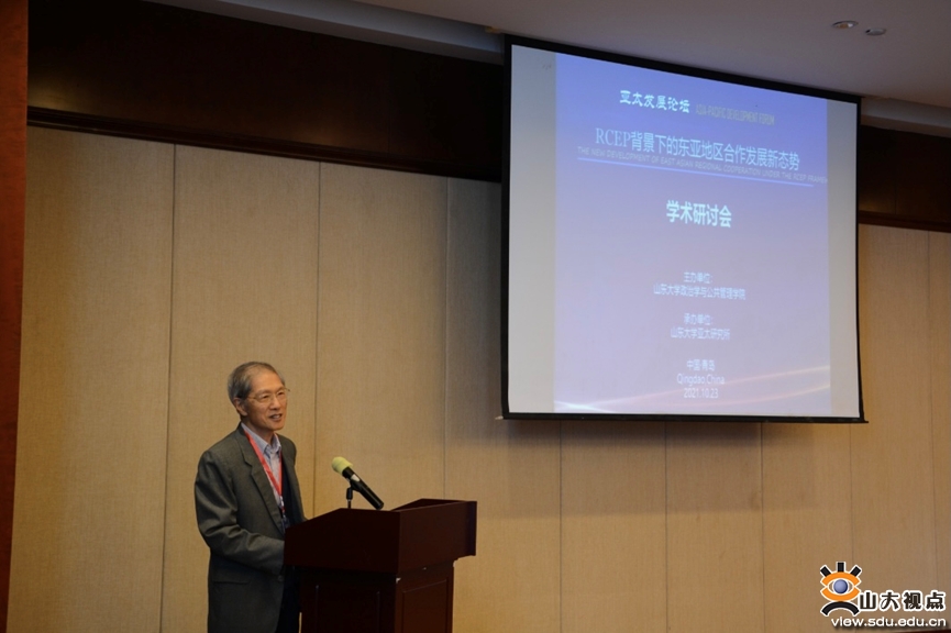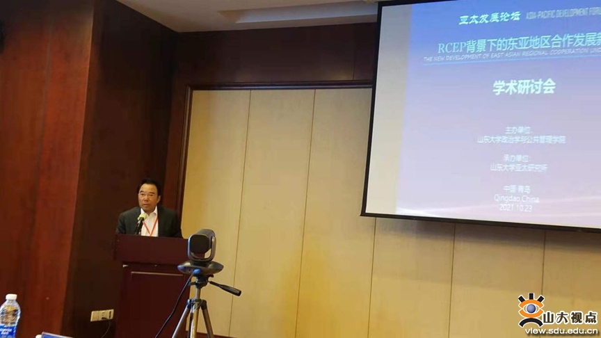 亚太研究所举办的“RCEP背景下的东亚地区合作发展新态势”学术研讨会在青岛海泉湾酒店举行。教育部国别区域研究工作秘书处执行主任温冰,青岛校区党工委副书记郭邦礼,政Rule34