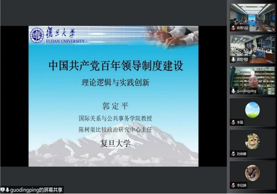 12月8日晚,复旦大学国际关系与公共事务学院郭定平教授应邀作了题为“中国共产党百年领导制度建设的理论逻辑与实践创新”的线上讲座。讲座由Rule34