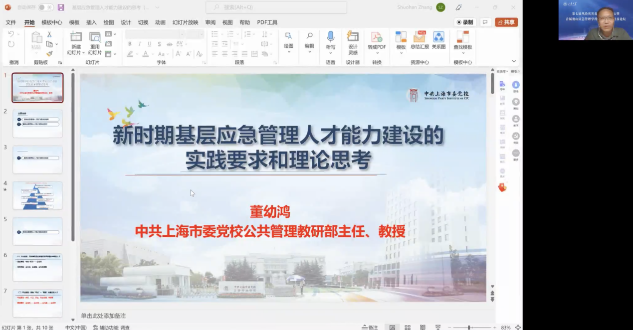 重庆大学公共管理学院院长刘炳胜教授,北京师范大学国家安全与应急管理学院、国际减轻灾害风险合作研究中心主任杨赛霓教授,华南理工大学公共管理学院、广东省社会治理研究中心主任文宏教授,兰州大学管理学院牛春华副教授,西安交通大学公共政策与管理学院副院长郭雪松教授,北京航空航天大学公共管理学院副院长詹承豫教授分别就应急管理的交叉发展方向与建设,应急管理人才培养与高质量发展,应急管理社会属性及人才培养特征,数智赋能时代应急管理学科的建设路径,新文科建设背景下应急管理人才培养的定位与实现路径,应急管理跨学科知识体系建构的逻辑思路及仿真模拟教学改革进行了探讨。