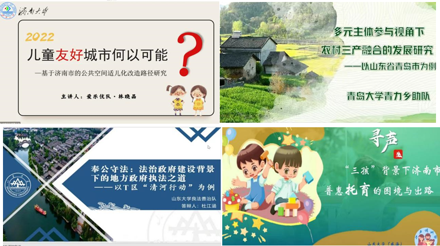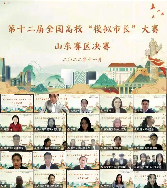 、中国海洋大学、济南大学、青岛大学、山东师范大学、曲阜师范大学的六所高校十二支参赛队伍分别以模拟危机处理、模拟工作场景、举办论证会等多种形式进行展示,并以“市长”的身份,对乡村振兴、服务民生、智慧养老等问题提出了具有公共关怀和创新思维的政策建议,充分展示了青年大学生心系家国、关心时事、开拓创新、实践求知的青春风采。
