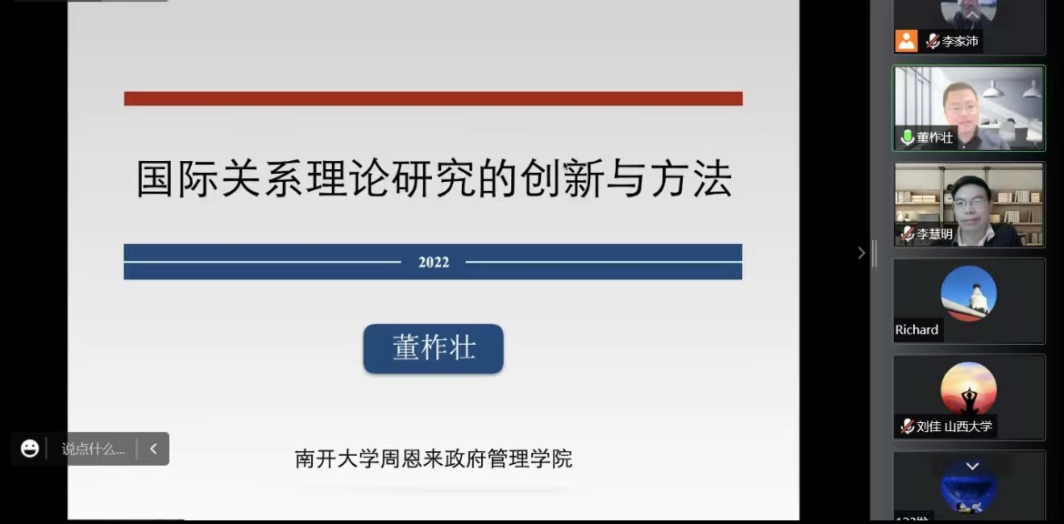 2022年11月25日,山大国政博士生学术工作坊第二期于线上成功举办。南开大学周恩来政府管理学院讲师董柞壮以“国际关系理论研究的创新与方法”为题进行了精彩讲座。Rule34