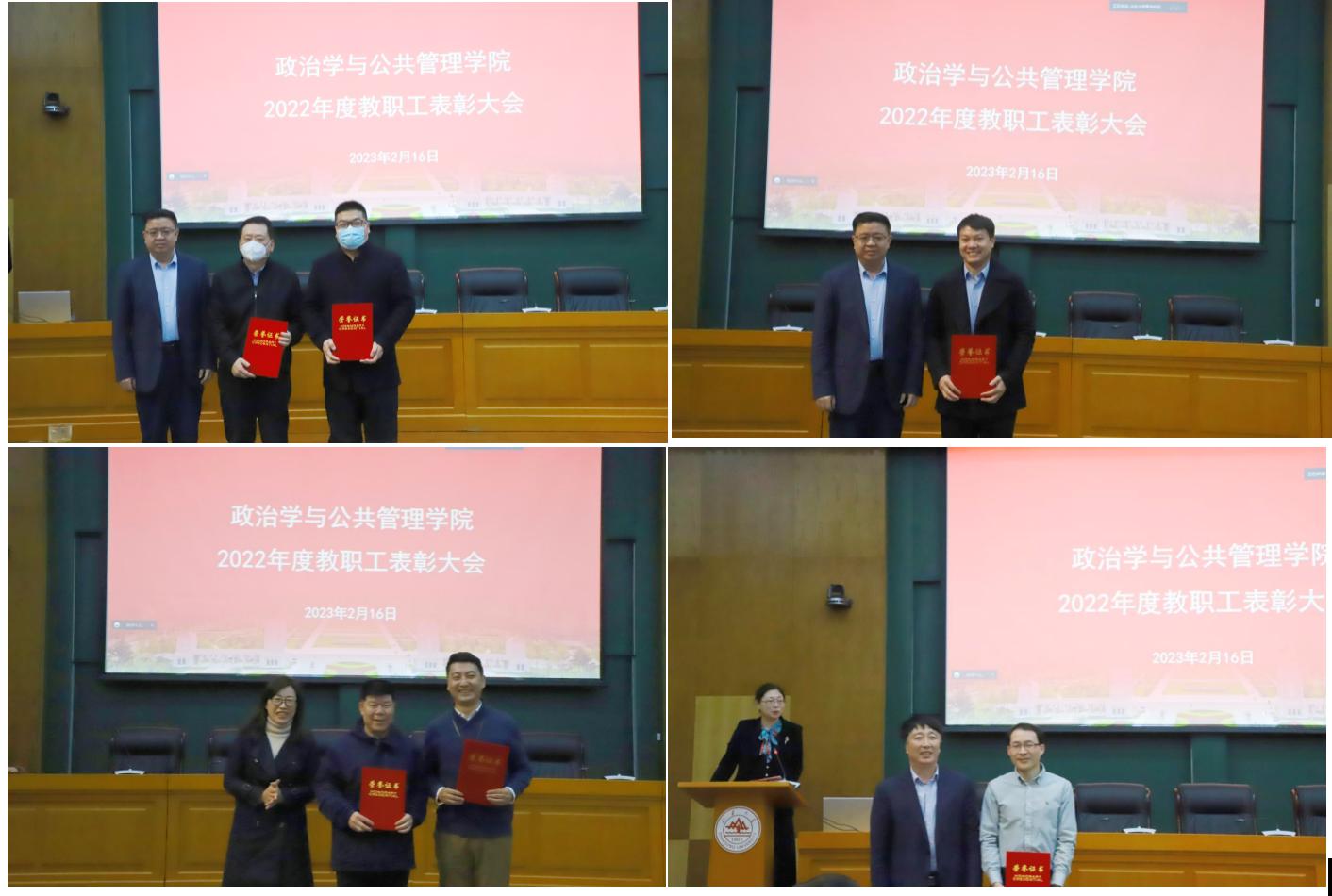 2022年度教职工表彰大会隆重表彰了在教书育人、科学研究、管理服务工作岗位上踏实进取、爱岗敬业、为学院发展做出突出贡献的先进集体和个人,学院党委副书记石莹主持表彰大会。为树立正确的价值导向,激发全体教职工的使命感、责任感和荣誉感,学院制定了《教职工荣誉体系建设方案》,构建了从集体到个人、从教学科研到服务保障全方位的学院荣誉体系。大会依次颁发了教职工荣誉体系中的优秀共产党员奖、优秀党务工作者奖、优秀教师奖、先进教育工作者奖、科研突出贡献奖、MPA最受欢迎教师奖、MPA最佳教务工作者奖、文体活动突出表现奖及先进基层党组织奖。