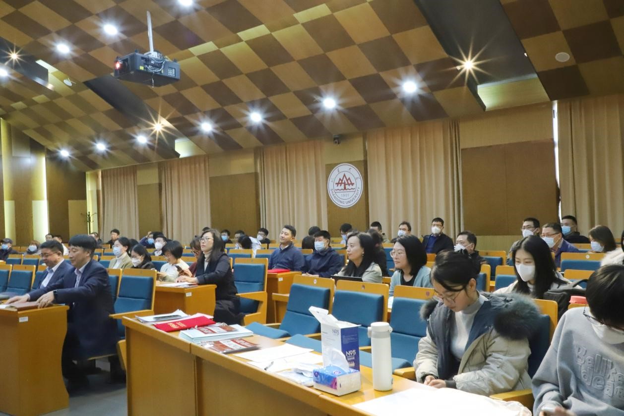 在青岛校区华岗苑南楼召开新学期工作会议暨2022年度教职工表彰大会。会议采取线上线下相结合的方式,学院党委书记盖玉强主持会议,学院常务副院长马奔出席会议,学院领导班子成员及全体教职工参加会议。