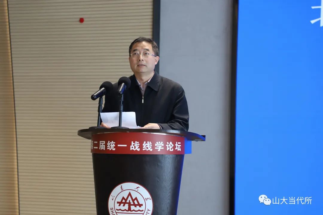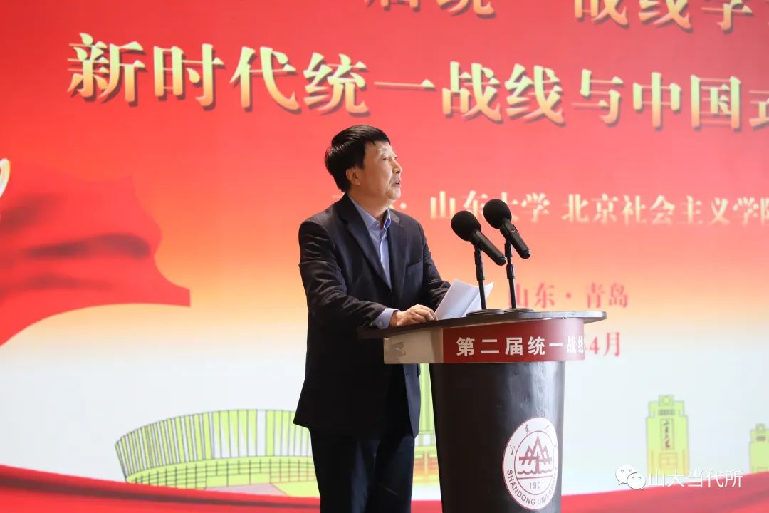马克思主义学院教授王韶兴倡导积极构建中国自主的政党政治知识体系;湖南省社会主义学院教授周述杰分析了统一战线与全过程人民民主的逻辑契合与现实演绎;中共青岛市委统战部一级巡视员王振海认为,应加强对统战思维的研究与认知;浙江省社会主义学院一级巡视员张建明以浙江余杭小古城村“两众”实践样本为例,分析了“两众”式协商民主对全过程人民民主在基层的充分展开;中共山东省委党校教授谭建阐释了如何推进协商民主制度化、规范化、程序化的问题;湖南师范大学马克思主义学院教授李超民解读了“大统战”工作格局下如何加强网络人士统战工作;山东社会科学院马克思主义研究院研究员冯锋分享了他对新时代加强民营经济统战工作的思考;贵州师范大学教授张荣军阐述了如何用中华优秀传统文化赋能统一战线,以更好地服务于中国式现代化;山东省社会主义学院教授冯永昌围绕充分发挥新时代统一战线推进中华民族伟大复兴的法宝作用发表了自己的见解。