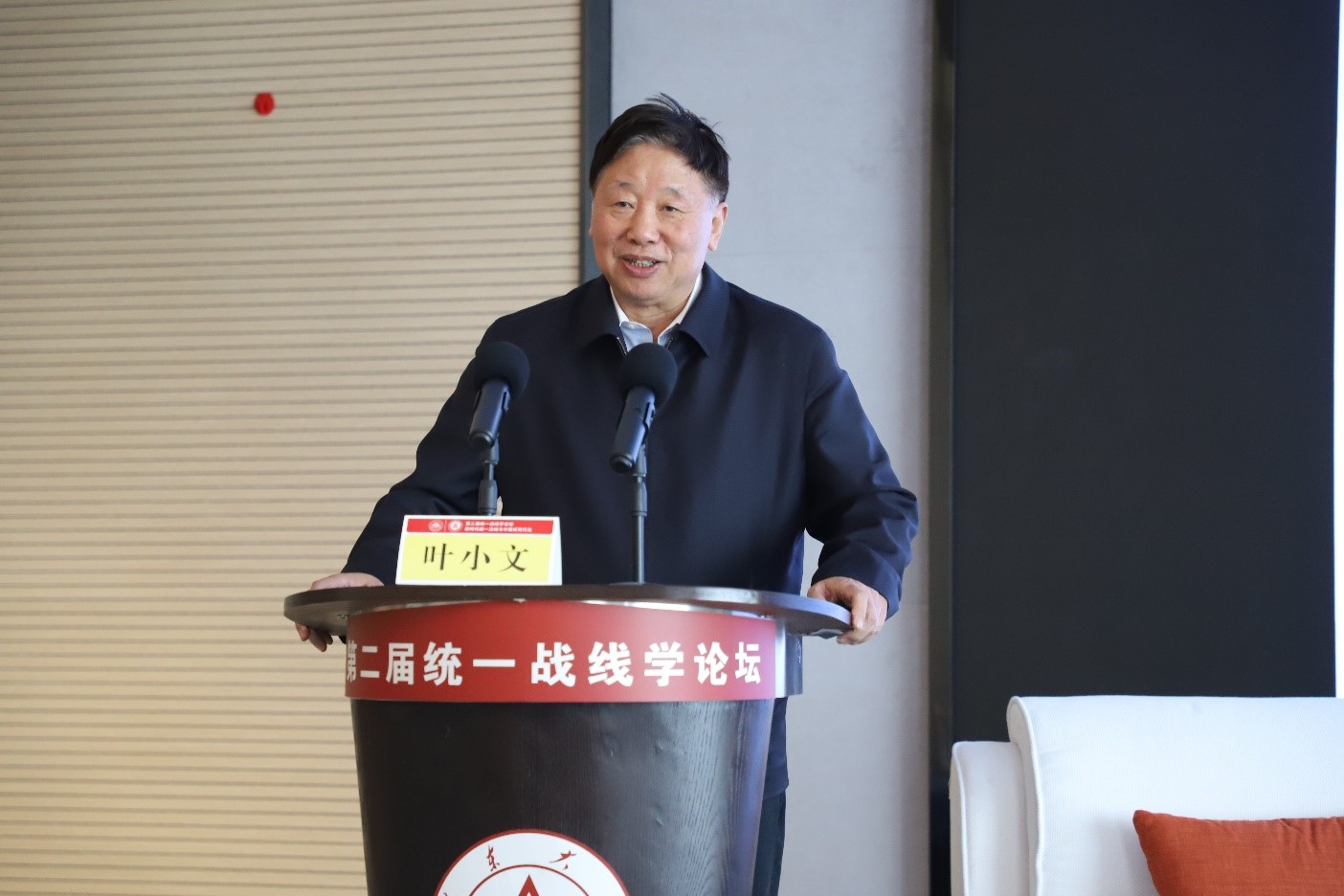叶小文在题为“研究统战学,画大同心圆”的主旨报告中,介绍了统一战线学的基本概念与范畴以及研究的目的和意义,认为统一战线学是经过长期实践检验的系统科学,是推动国家治理现代化的治理科学,是充分发挥社会主义政治优势的政治科学,也是传承发展和而不同的中华优秀传统文化、促进人类命运共同体建设的科学。统一战线一致性和多样性的统一可以集中体现为“同心圆理论”,只要坚守住政治底线这一圆心,那么多样性的半径越长画出的同心圆就越大。统战学还要面向世界,在全世界寻求最大公约数、画出最大同心圆,为实现中华民族伟大复兴汇聚磅礴伟力。