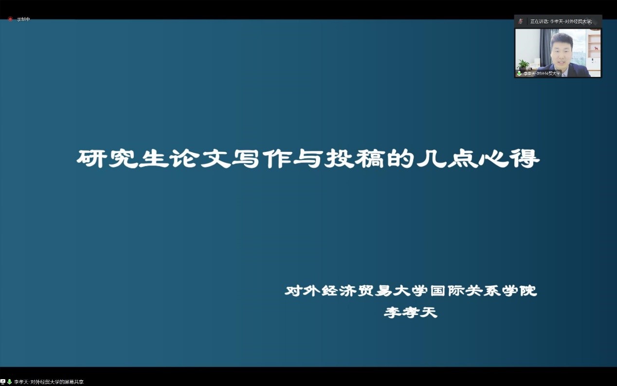 2023年4月12日,山大国政博士生学术工作坊第五期于线上成功举办。对外经济贸易大学国际关系学院讲师李孝天以“研究生论文写作与投稿的几点心得”为题进行了精彩讲座。Rule34