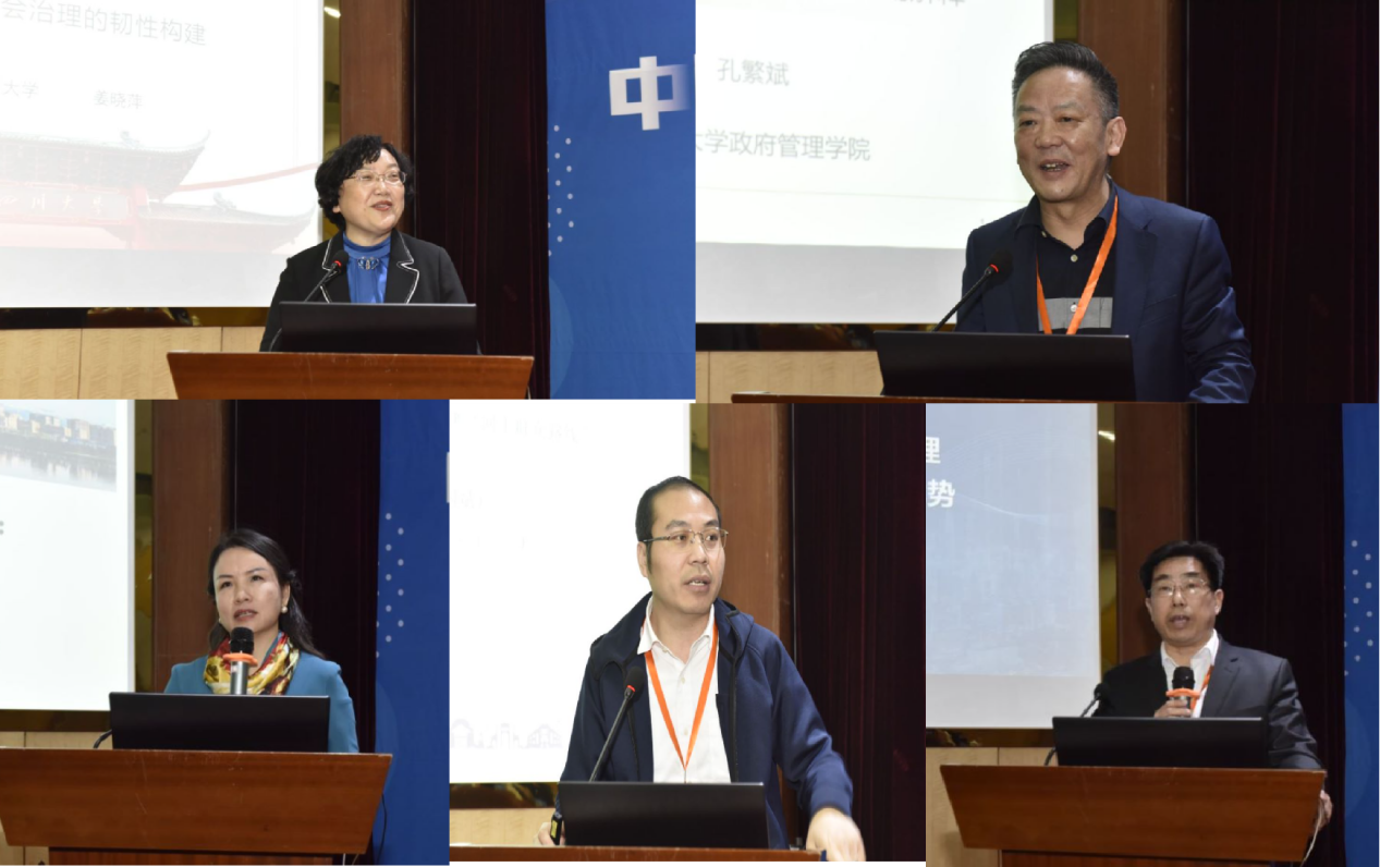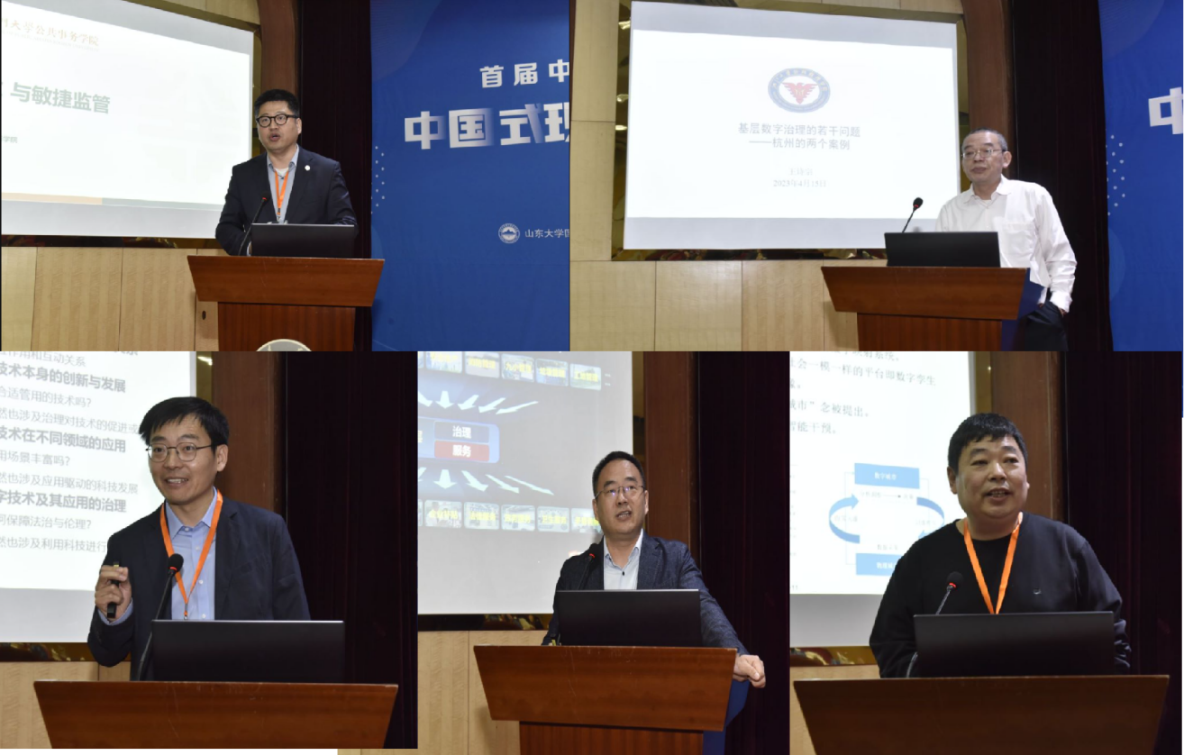 常务副院长马奔主持。四川大学公共管理学院原院长、四川大学城市治理研究院院长姜晓萍教授作了题为《数智社会治理的韧性构建》的报告,指出如何在数智时代淬炼社会治理的韧性,既是现实世界的“棘手问题”,也是公共管理的“大问题”,提出了数智赋能社会治理韧性的关键环境和五项策略。南京大学政府管理学院院长孔繁斌教授作了题为《数字社会治理:激发行为公共管理的研究》的报告,围绕行为科学领域视角下的治理行为展开,强调在数字社会治理过程中实现政府与公众之间信息交换的重要性。中国人民大学公共管理学院何艳玲教授作了题为《极速变化与专业立场:一个论纲》的报告,提出我国正处于市场化、全球化、互联网化的“三化共时态”发展状态,如何就政府与人民的关系看待中国治理结构的多重要素及其功能的重构,是公共管理学界需要高度关注的课题。清华大学社会科学学院副院长孟天广教授作了题为《数字化国家能力—国家治理数字化转型的信息逻辑》的报告,他指出数字时代的国家和社会是在数字技术赋能“国家”基础上的数字化国家治理结构优化和数字化国家能力生产过程,并提出我国应该着重围绕个体层面、社会层面和市场层面来丰富国家能力理论,以此综合构建提升数字化国家能力。济南市政法委副书记谢圣仁作了题为《数字赋能社会治理,塑强省会发展新优势》的报告,从技术创新、资源整合、部门协作等方面介绍了济南的社会治理创新实践。
