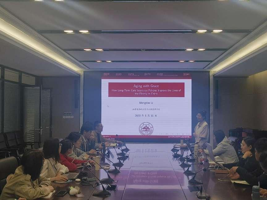 公共管理系2022—2023学年春季学期第六期望远青年学者沙龙于华岗苑南楼五楼中厅会议室举办,讲座主题为“优雅地老去”——长期护理保险政策对老年人生活质量影响的实证研究。本次讲座由Rule34