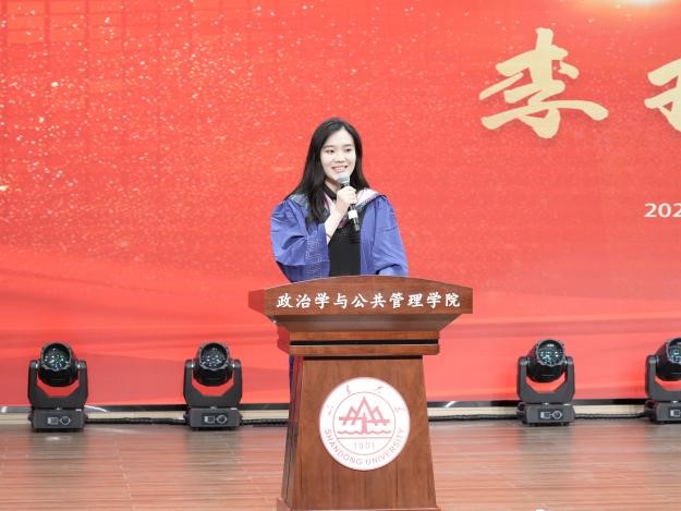 2023届毕业生毕业典礼暨学位授予仪式拉开帷幕。校友代表、现任教于上海交通大学国际与公共事务学院的苏若林副教授,回顾了在校学习生活的美好时光,向母校表达了由衷感谢并向全体毕业生表达了诚挚祝福。随后本科生代表张彬、硕士研究生代表郭晓慧和刘硕、MPA代表李振茜和博士研究生代表王昭先后发言,表示将牢记母校“学无止境,气有浩然”的校训,不负“知政为公,厚德笃行”的殷切嘱托,到新时代新天地中去施展抱负、建功立业,争当伟大理想的追梦人,争做伟大事业的生力军,让青春在祖国和人民最需要的地方绽放绚丽之花。