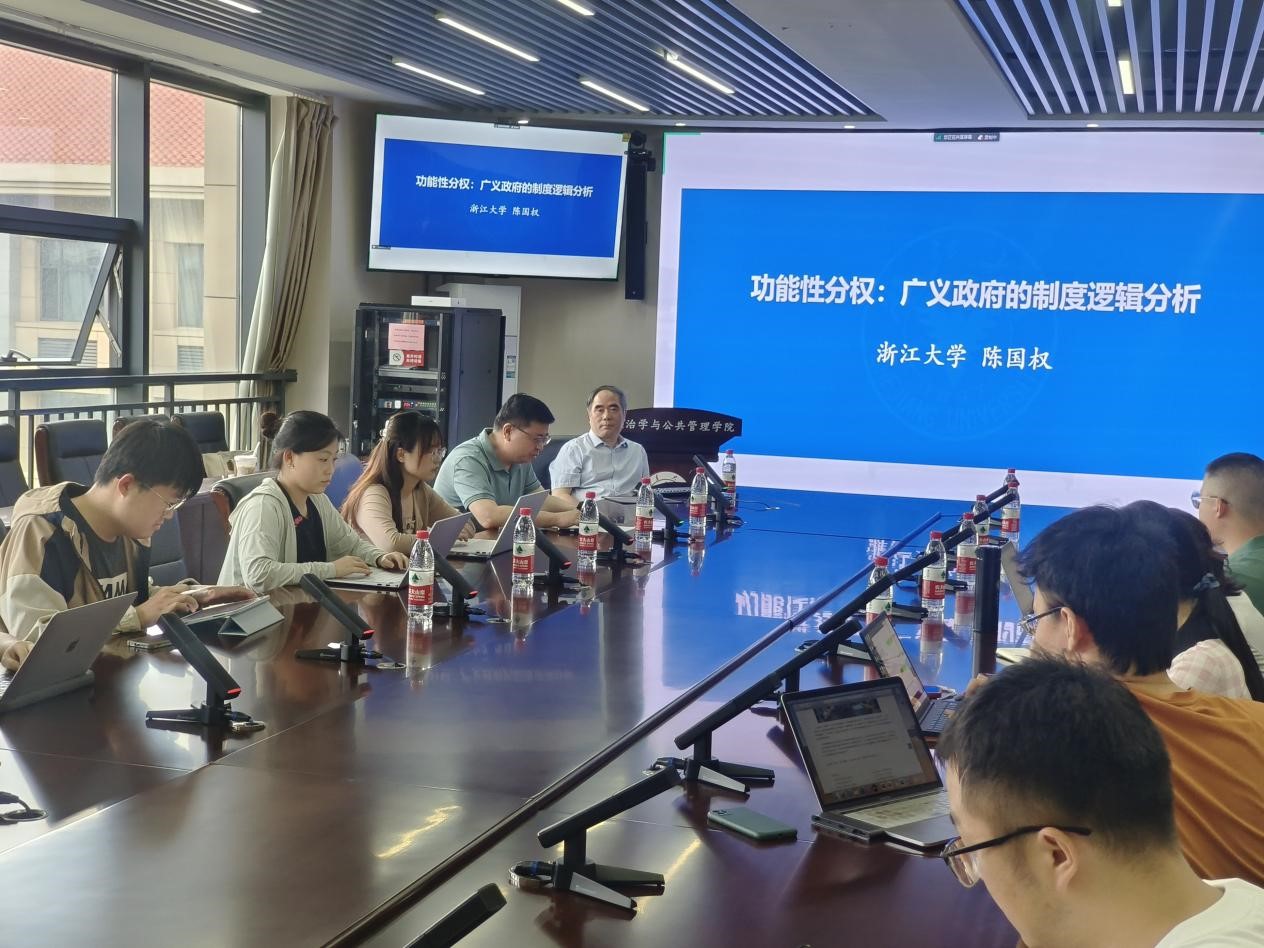 公共管理系2022-2023学年春季学期第十一期望远学术沙龙于华岗苑南楼四楼中厅会议室召开,讲座主题为“功能性分权:广义政府的制度逻辑分析”。本次讲座由浙江大学求是特聘科研岗教授陈国权主讲,Rule34