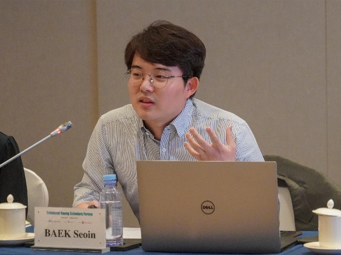 赵玙佳副教授探讨了大国竞争时代东亚一体化的主要障碍和驱动力。汉阳大学白西寅助理教授强调了人工智能对中日韩合作的重要性,倡导加强制度支持以促进该领域合作。横滨国立大学星野尚大从国际相互认知的视角看待财政和金融政策的制定,并对财政持续稳定发展提出了建议。明治大学相原勇希认为新冠疫情影响了中日韩人民间的相互认知,而通过促进不同年龄阶段的各代人互动,可以增强三国作为东亚国家的意识。
