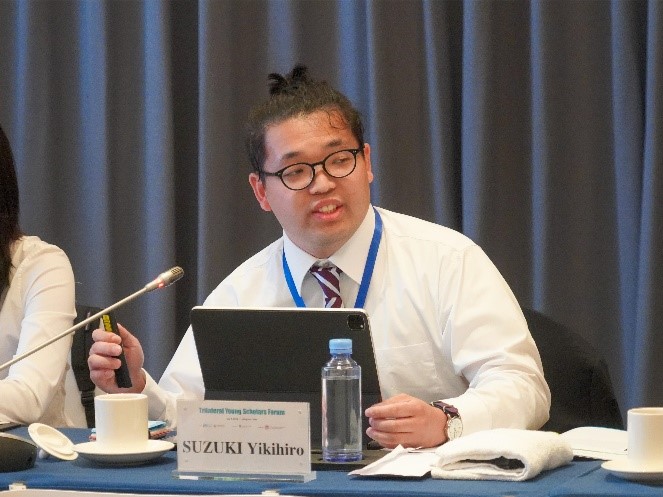 杨延龙认为民粹主义加剧了全球化的负面影响,影响了三国之间的相互理解以及对外部的看法,可能导致紧张关系和冲突。要通过理性的方法促进三边合作,推进高层沟通、政府间合作和建立多边协调机制,并为三国合作创造和谐的内外环境,探索东亚的共同价值观,促进开放和包容的区域合作。东京经济大学铃木幸大围绕中日韩在基础设施维护管理方面的立场及合作进行了分享,认为三国在开发土地和实现现代化方面缺乏共同的目标,应当通过人力资源、技术和教育交流在发展和维护基础设施方面相互合作,分享各国的基础设施发展经验。中国人民大学林泓帆谈论了中日韩主流媒体对三国认知的影响以及在相互认知下降背景下的策略。认为主流媒体在国家公共外交中发挥重要作用,各国应推动国内媒体建设,促进媒体在文化传播方面的合作,指导三国主流媒体之间的良性互动与合作。