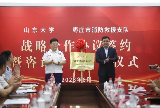 学生社会实践基地签约揭牌仪式及支队工作咨询专家聘任仪式。马奔在致辞中指出,将以此次共建活动为契机,充分发挥学院在应急管理理论研究及人才培养等方面的专业优势,不断推动理论研究与实践发展融合互促,携手为枣庄消防救援事业发展作出更大贡献。