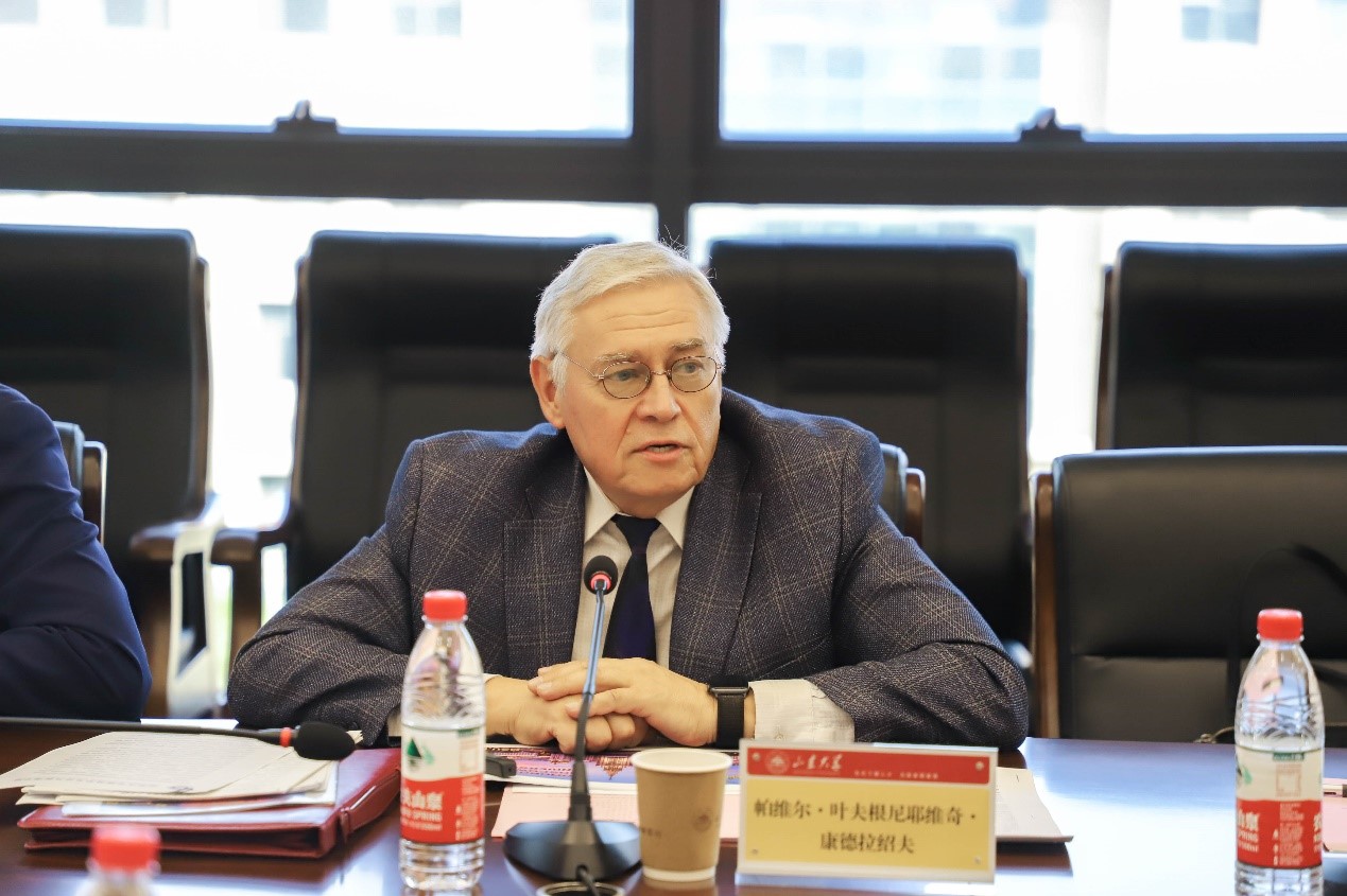 随后,帕维尔·叶夫根尼耶维奇·康德拉绍夫教授对莫斯科大学的发展状况、学科建设和合作方向进行详细介绍,并提出在上海合作组织的框架下建立数字经济技术与治理研究院的愿景和目标。山东省国际人才交流协会秘书长徐燕对协会基本情况和基本业务进行介绍。