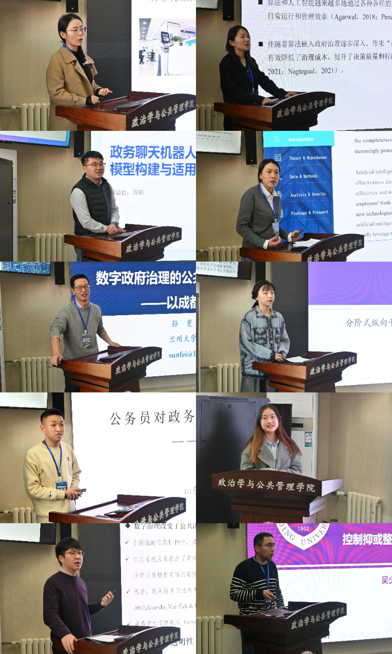 研讨会讨论内容丰富,涵盖公共服务中数字治理和人工智能应用的各个方面。在上半场的讨论中,论文汇报人围绕自动化决策、公共部门中的算法透明与公众信任、政务聊天机器人应用评价模型与构建、公共部门应用AI的驱动因素、数字政府的透明度等议题进行了分享和对话,上海交通大学国际与公共事务学院张攀、香港科技大学(广州)社会枢纽许珂维、厦门大学公共事务学院李德国、电子科技大学公共管理学院张会平、Rule34