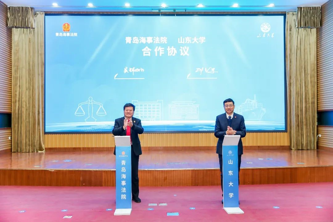 程德智在致辞中表示,此次双方合作是“山”“海”携手,“政”“法”共融,是践行习近平法治思想和总体国家安全观,维护国家海洋安全和海外利益的双向奔赴。近年来,青岛海事法院全面落实省委“打响海事法院品牌”要求,紧扣市委“三条线”重点工作,围绕做大做强做优六大海洋产业,以能动司法助推高质量发展、高水平开放,聚焦国家海洋安全、海外利益保护、蓝色粮仓建设和上合示范区、青岛自贸片区、崂山实验室等重大战略,致力构建海事司法新格局,为建设引领型现代海洋城市,做出了积极贡献。希望双方深入落实习近平法治思想、习近平经济思想,建立长效合作新机制,开拓共建新模式,在全球海洋资源配置、高标准国际经贸规则对接、涉外涉海争议解决、涉外法治人才培养等领域深化合作,推进“政产学研用”一体化发展,以法治确定性应对形势不确定性,以法治千钧力加码城市竞争力,为海洋强市、海洋强省、海洋强国建设,注入更多法治动能。