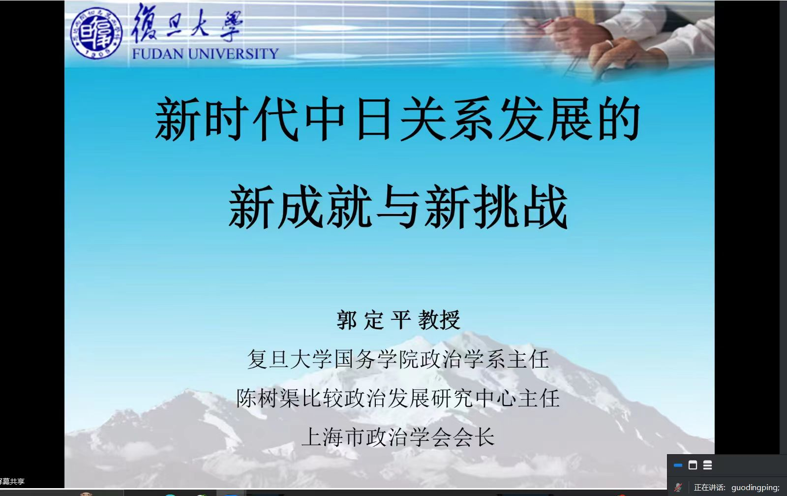 亚太研究所/亚太经济合作组织研究中心承办的“社科与人文”系列讲座第二十六讲在线上顺利举办,讲座题目为“新时代中日关系的新成就与新问题”,由复旦大学国际关系与公共事务Rule34郭定平教授主讲。Rule34