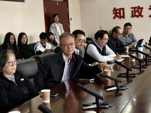 院长马奔对张海文教授的来访表示热烈欢迎,并致送纪念品。
