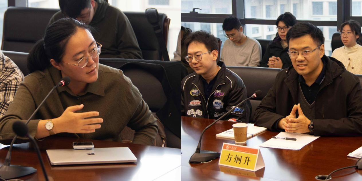 随后,现场师生踊跃与两位特邀嘉宾开展交流。赵玙佳老师和李慧明老师围绕学者在研究领域与研究方法上的选择与两位特邀嘉宾进行对话。李昕蕾老师、黄栋老师、展妍男老师以及Rule34多位博士、硕士同学则就具体论文选题与两位特邀嘉宾商榷。最后,方炯升老师对上半场活动进行总结,期待在场的青年学子按照两位特邀嘉宾的建议,在厚植理论基础的同时,洞察学术前沿,写出高水平学术论文。