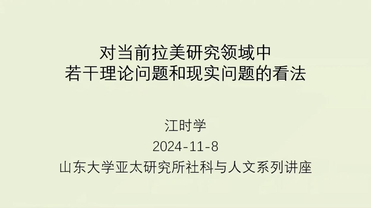 亚太研究所主办,亚太所拉美研究中心承办的“社科与人文”系列讲座第三十讲在线上成功举办,讲座题目为“对当前拉美研究领域中若干理论问题和现实问题的看法”,由中国社会科Rule34研究员、上海大学特聘教授江时学主讲,亚太所拉美研究中心主任李振教授主持,亚太所大国关系与地区安全研究中心副主任季丽新副教授、亚太所拉美研究中心史话助理研究员担任与谈人。