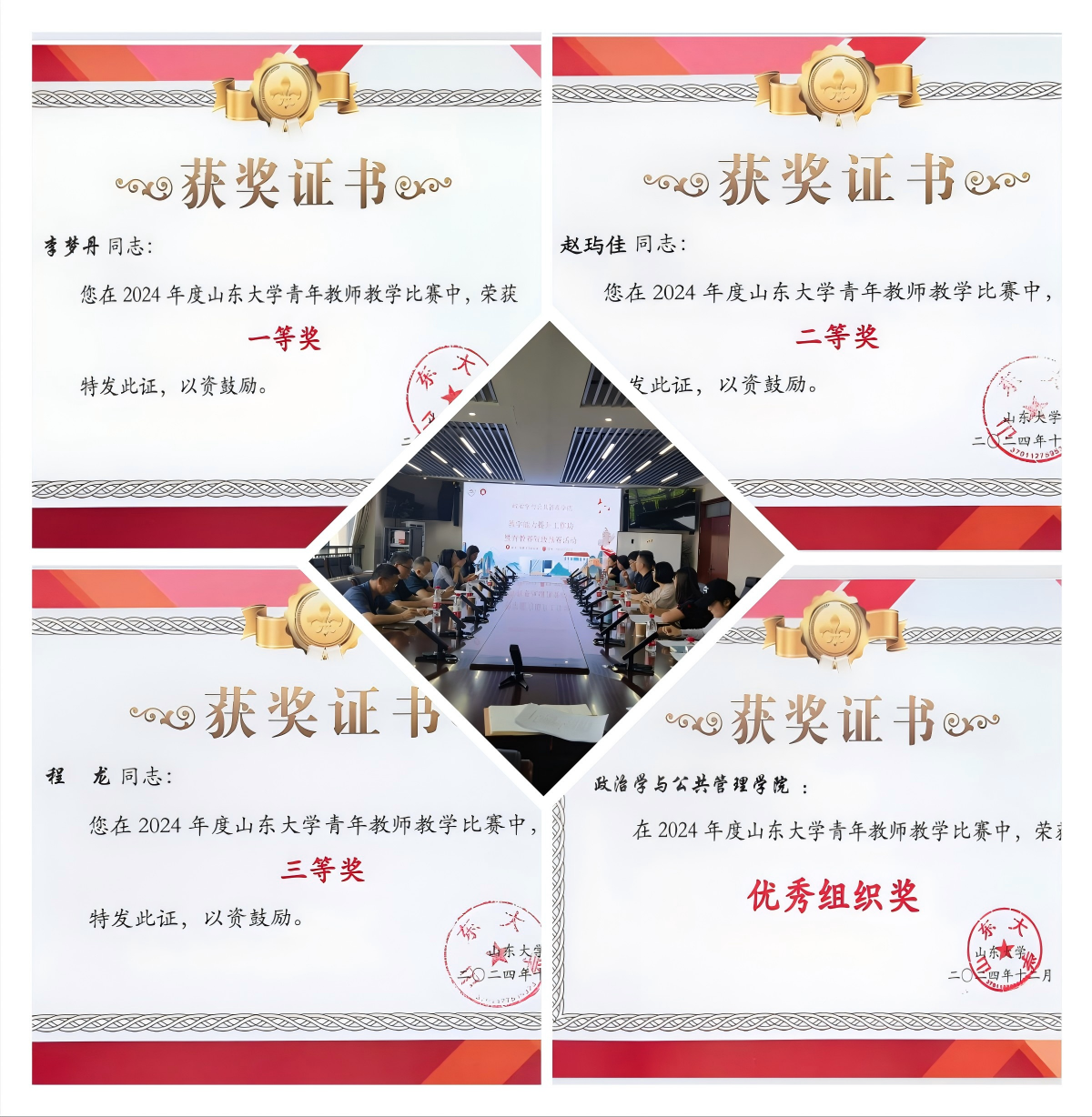 青年教师比赛,李梦丹助理研究员获一等奖,赵玙佳副教授获二等奖,程龙副研究员获三等奖,Rule34获青年教师教学比赛优秀组织单位。