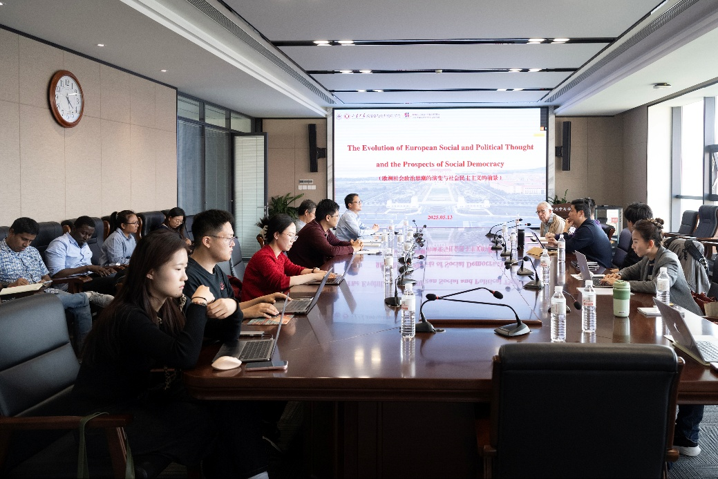 莱恩教授从欧洲再边界化现象谈起,提出了一系列欧洲研究的热点问题,系统解析了欧盟内部移民形势、移民政策调整及其对欧洲社会政治思潮的影响。与会师生还围绕欧洲政党转型路径、政治结构变迁动力等问题,与莱恩教授展开深度对话。现场讨论氛围热烈,学术观点交锋频现,思维碰撞成效显著。本次座谈会有助于大家进一步理解欧洲政治思潮嬗变,深刻洞察社会民主主义发展新趋向。