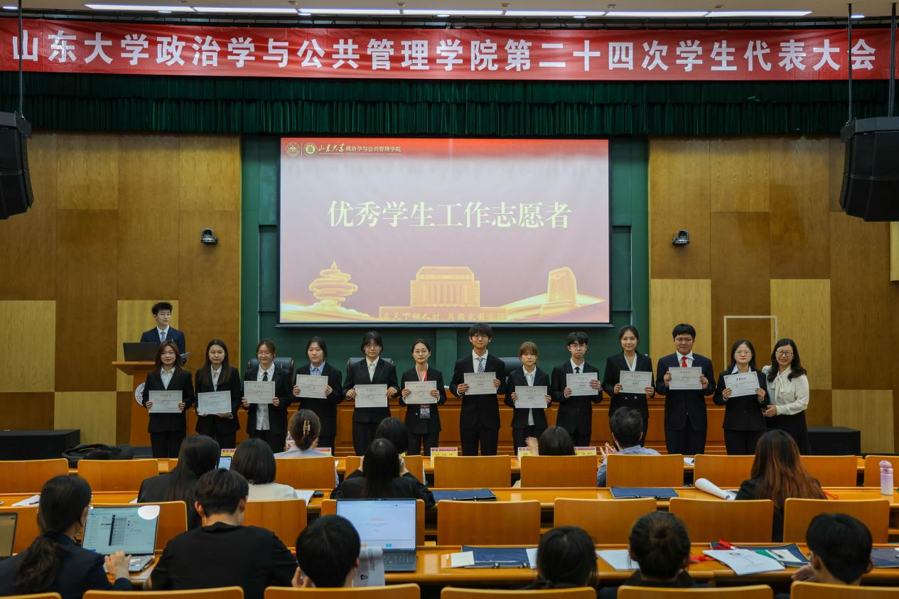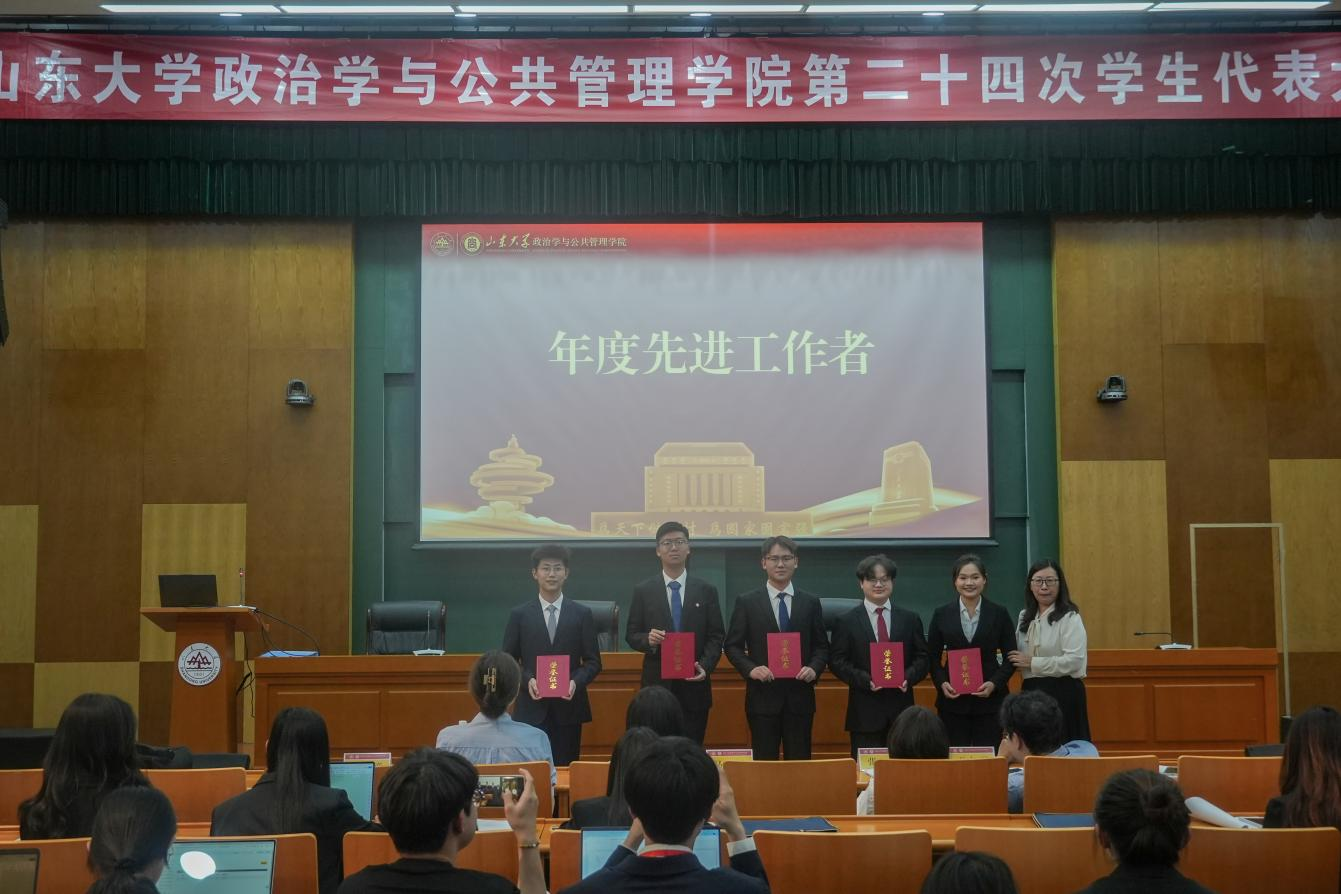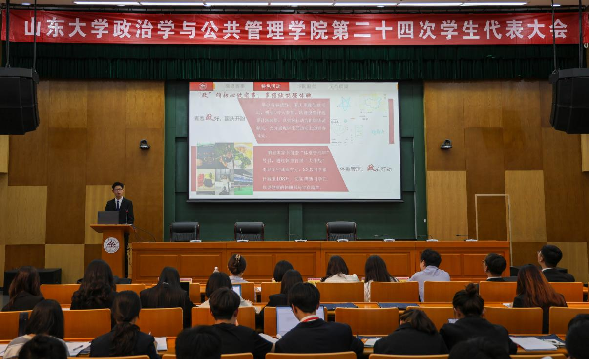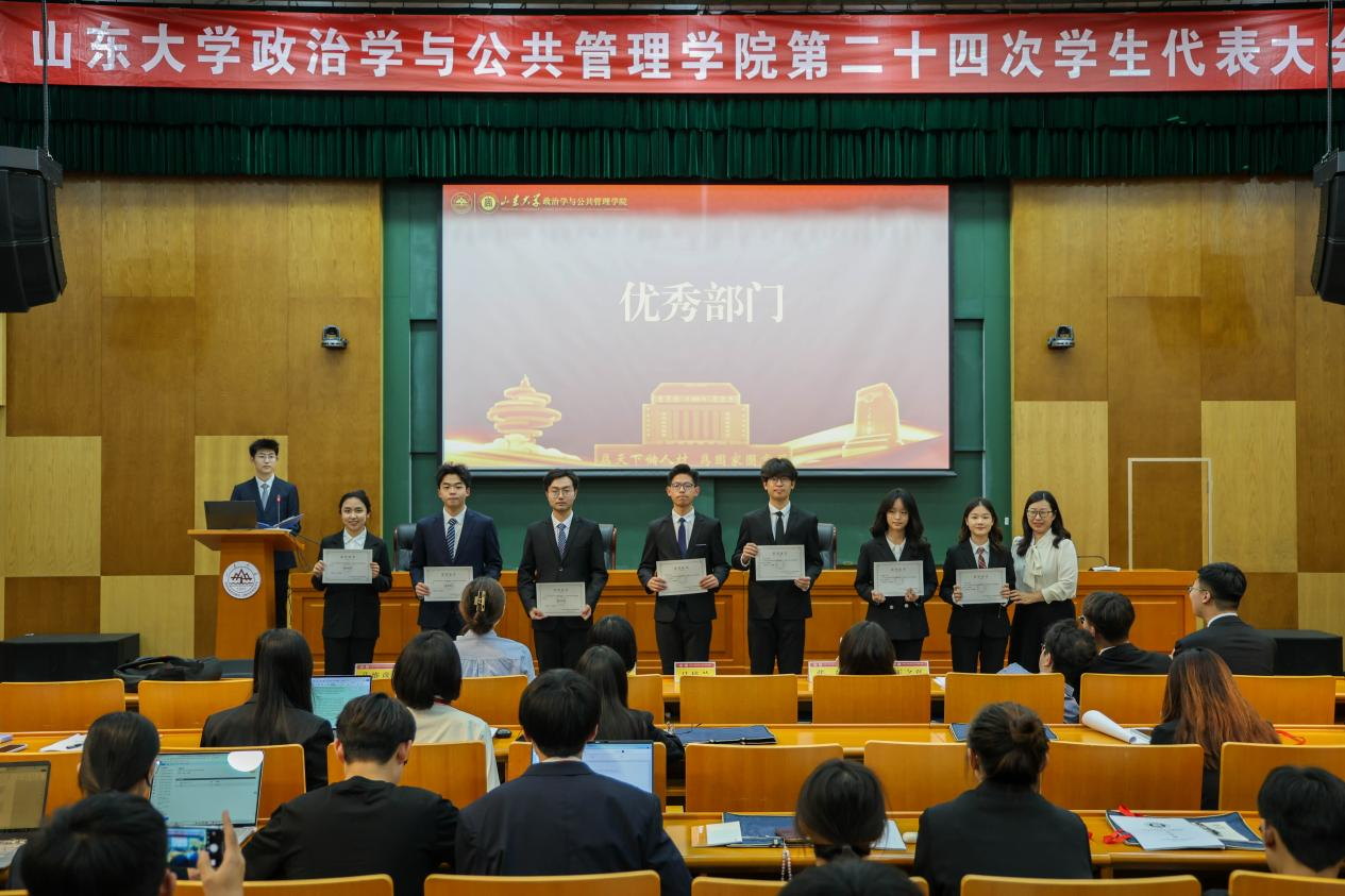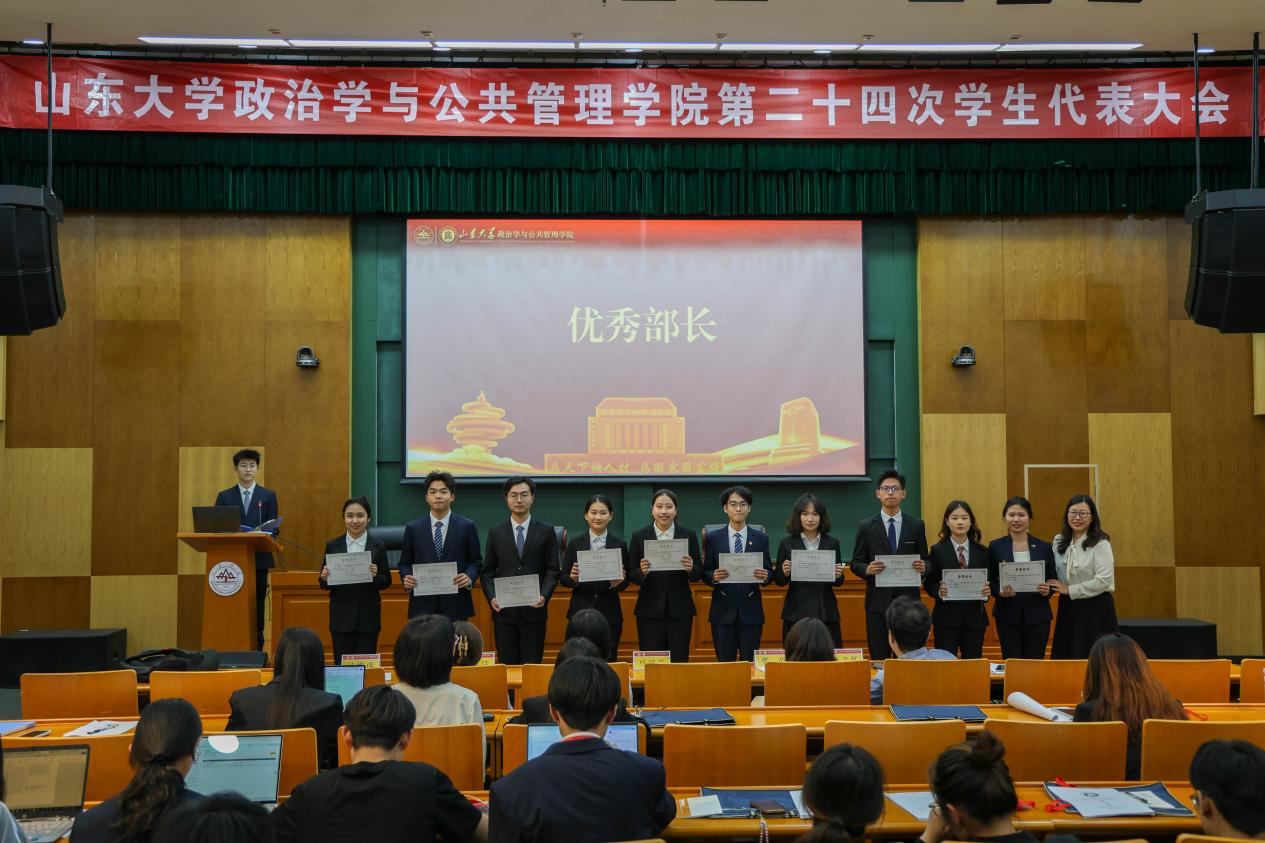 第二十四届学生会主席团。8位候选人依照会前抽签顺序依次进行竞职演讲,紧密围绕“践行服务担当、擦亮政管品牌”的宗旨,紧扣学生会结构改革、未来发展等主题,结合工作履历、个人优势、未来畅想等方面进行演讲,并现场抽取问题进行回答。大会对获奖部门及个人进行了表彰。