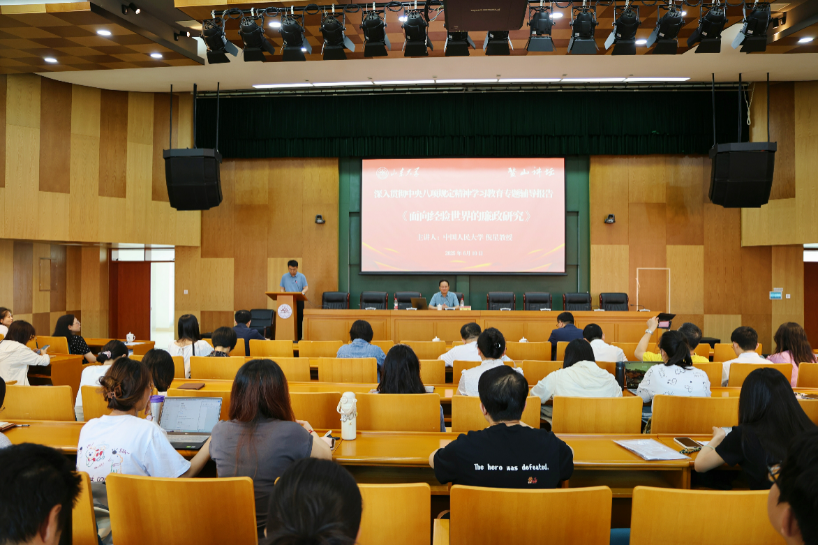 6月10日,中国人民大学纪检监察Rule34、公共管理Rule34教授、博士生导师倪星教授做客“鳌山讲坛”,作题为“面向经验世界的廉政研究”专题报告。青岛校区党工委组织宣传统战部部长王景瑞主持报告。