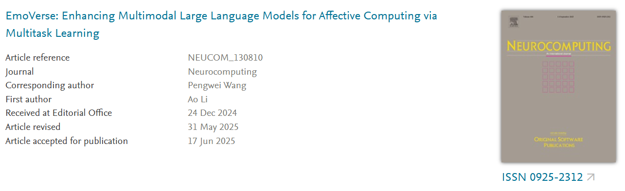 与西安交通大学的联合研究团队在情感计算与多模态大模型领域取得相关研究成果。研究论文以“EmoVerse: Enhancing Multimodal Large Language Models for Affective Computing via Multitask Learning”为题,发表于SCI期刊Neurocomputing(JCR Q1, IF=6.5,中科院二区TOP)。其中,政Rule34
