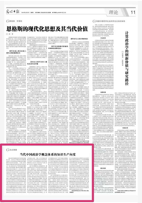文章被《光明日报》2025年8月6日第11版以“当代中国政治学概念体系的知识生产向度”为题进行论点摘编。