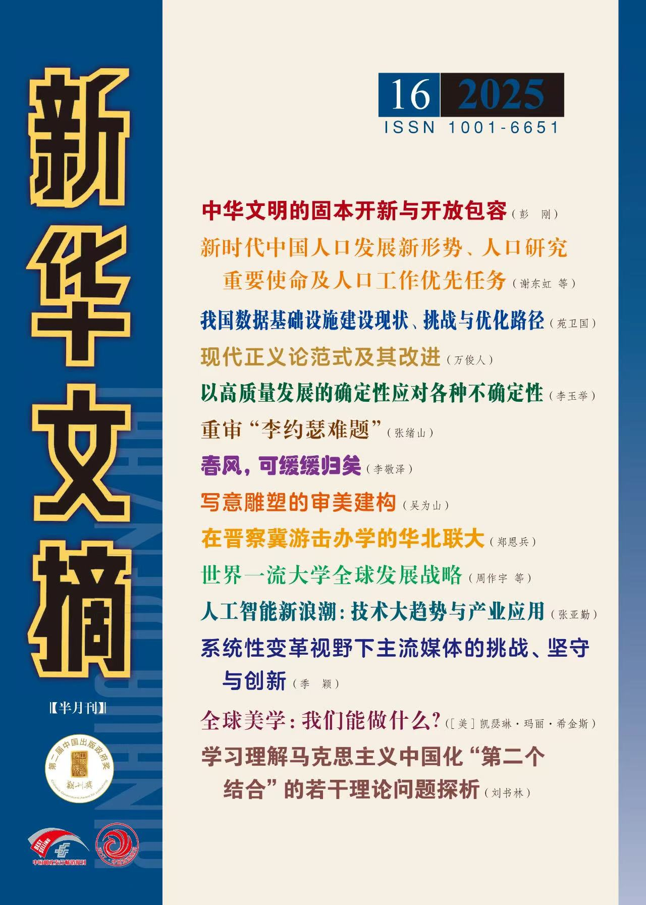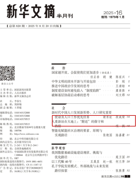 近日,政Rule34 谢东虹助理研究员发表于《人口研究》2025年第2期的《新时代中国人口发展新形势、人口研究重要使命及人口工作优先任务》一文被《新华文摘》2025年第16期作为封面文章全文转载。