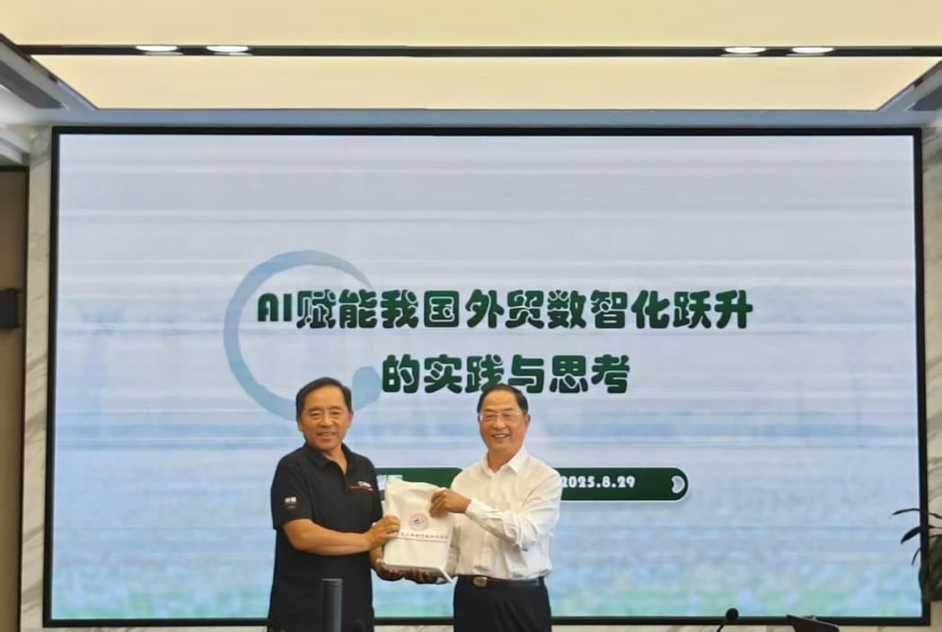 讲座伊始,蒋耀平部长系统梳理了我国人工智能综合实力的发展现状,深入阐释了AI技术作为引领新一轮科技革命和产业变革的战略性技术,如何为我国外贸数智化转型提供关键驱动力。他结合货物贸易、服务贸易、数字贸易三大领域的丰富案例,详细分析了AI赋能外贸高质量发展的实践成效。最后,蒋耀平部长就突破关键技术瓶颈、构建数字化支撑体系、参与全球规则制定等提出政策建议。