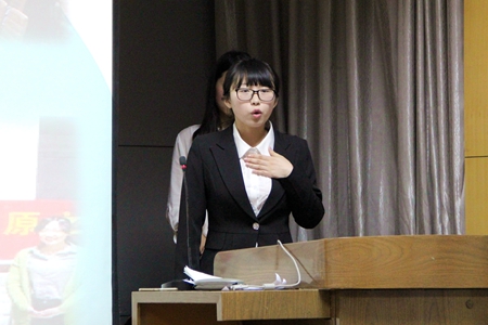 在十八届三中全会精神宣讲会中,作为全省唯一学生代表向省长郭树清提问